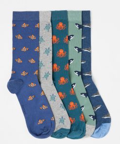 Fat Face Multi Sealife 5 Pack Men’s Socks | Multi Sealife