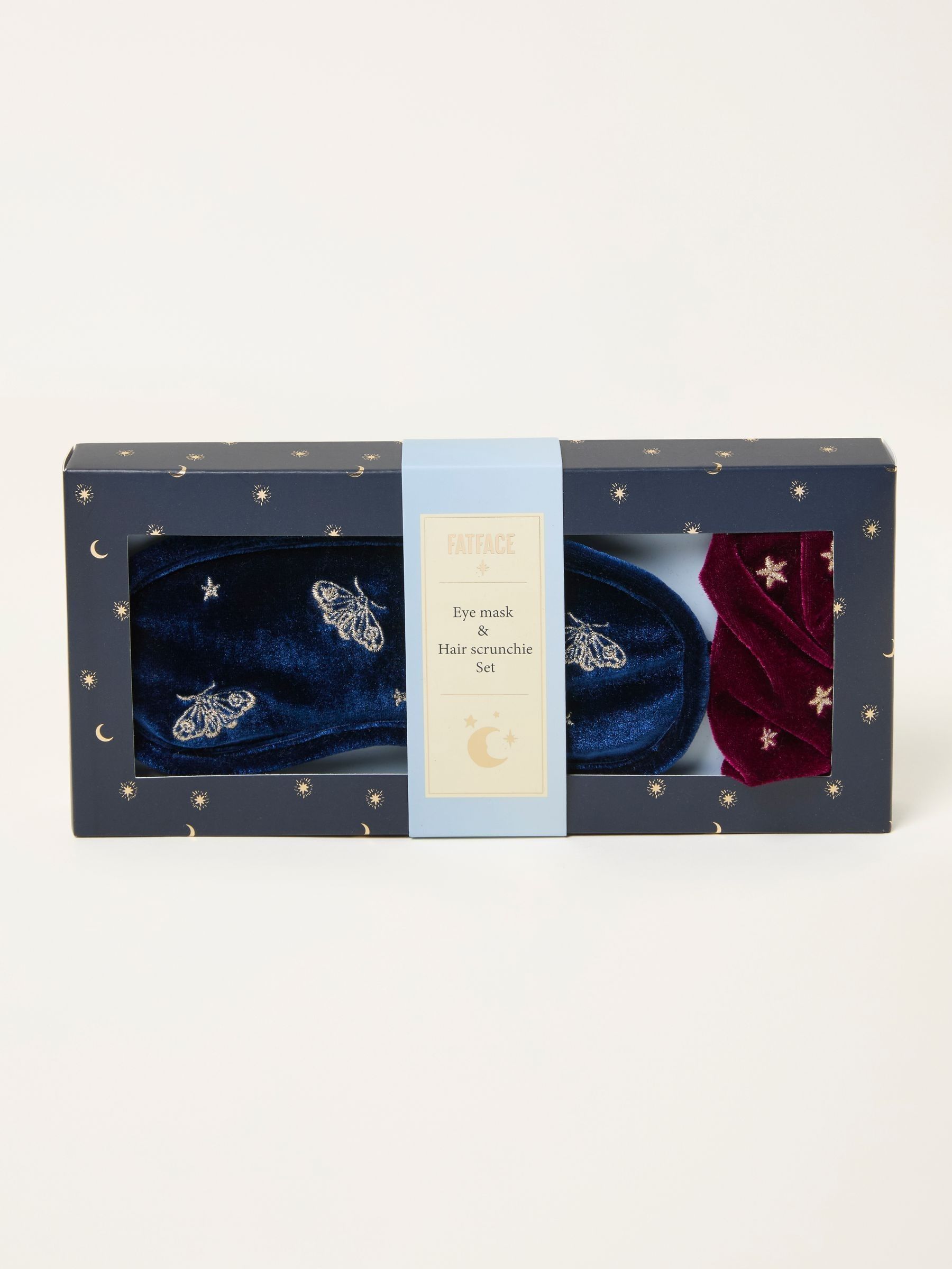 Pamper yourself or a loved one with this luxurious gift set featuring a soft eye mask and a star scrunchie – perfect for relaxing self-care rituals. Ideal for gifting or treating yourself.
