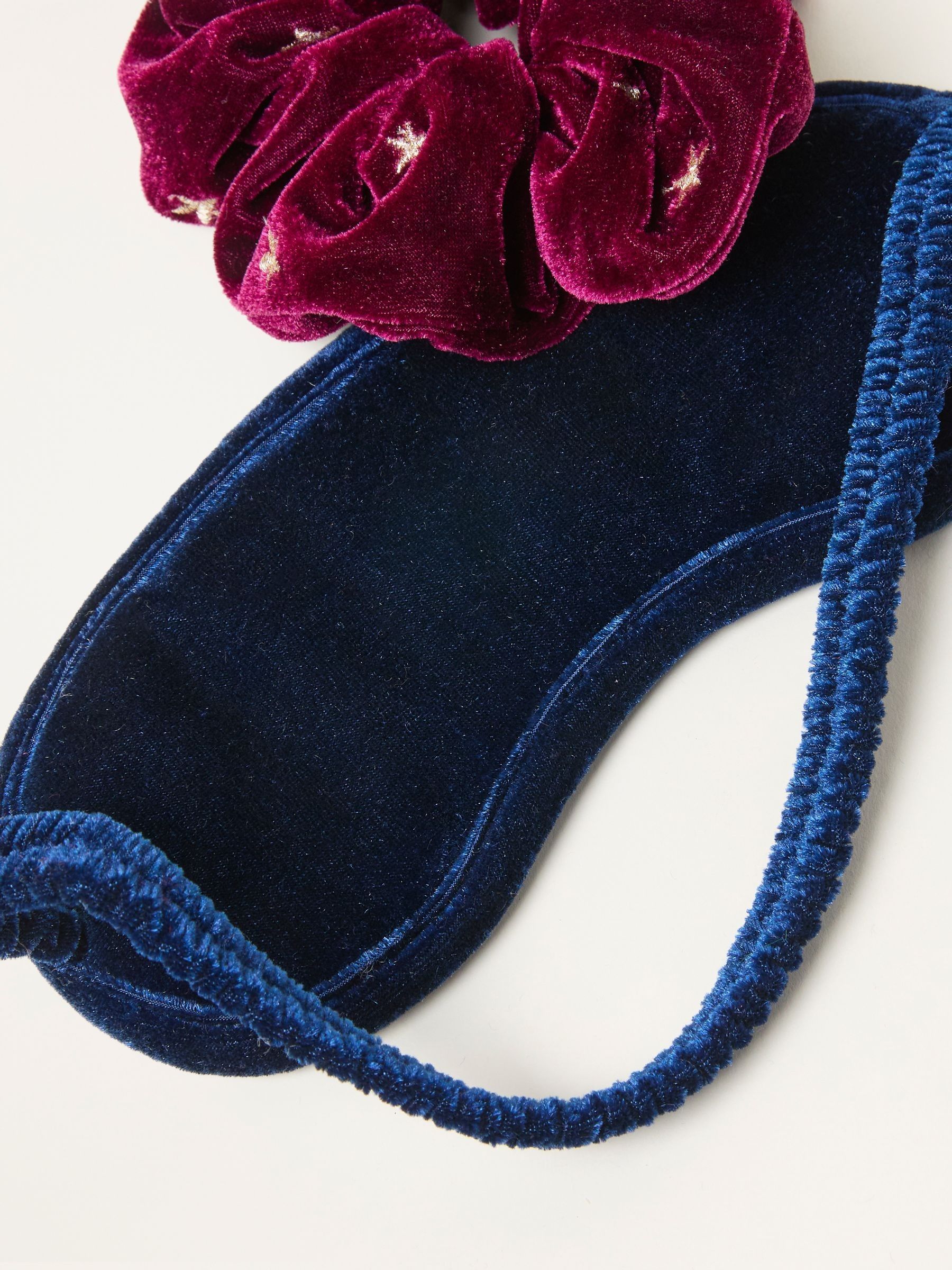Eye Mask Main 94% Recycled polyester, 6% Elastane. Filling 100% Recycled polyester. Scrunchie 94% Recycled polyester, 6% Elastane.