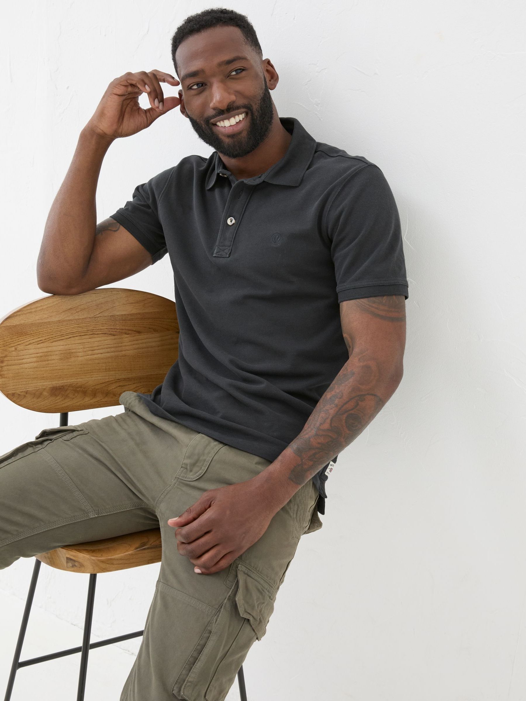 Fat Face Men’s Black Short Sleeve Pique Polo | Black