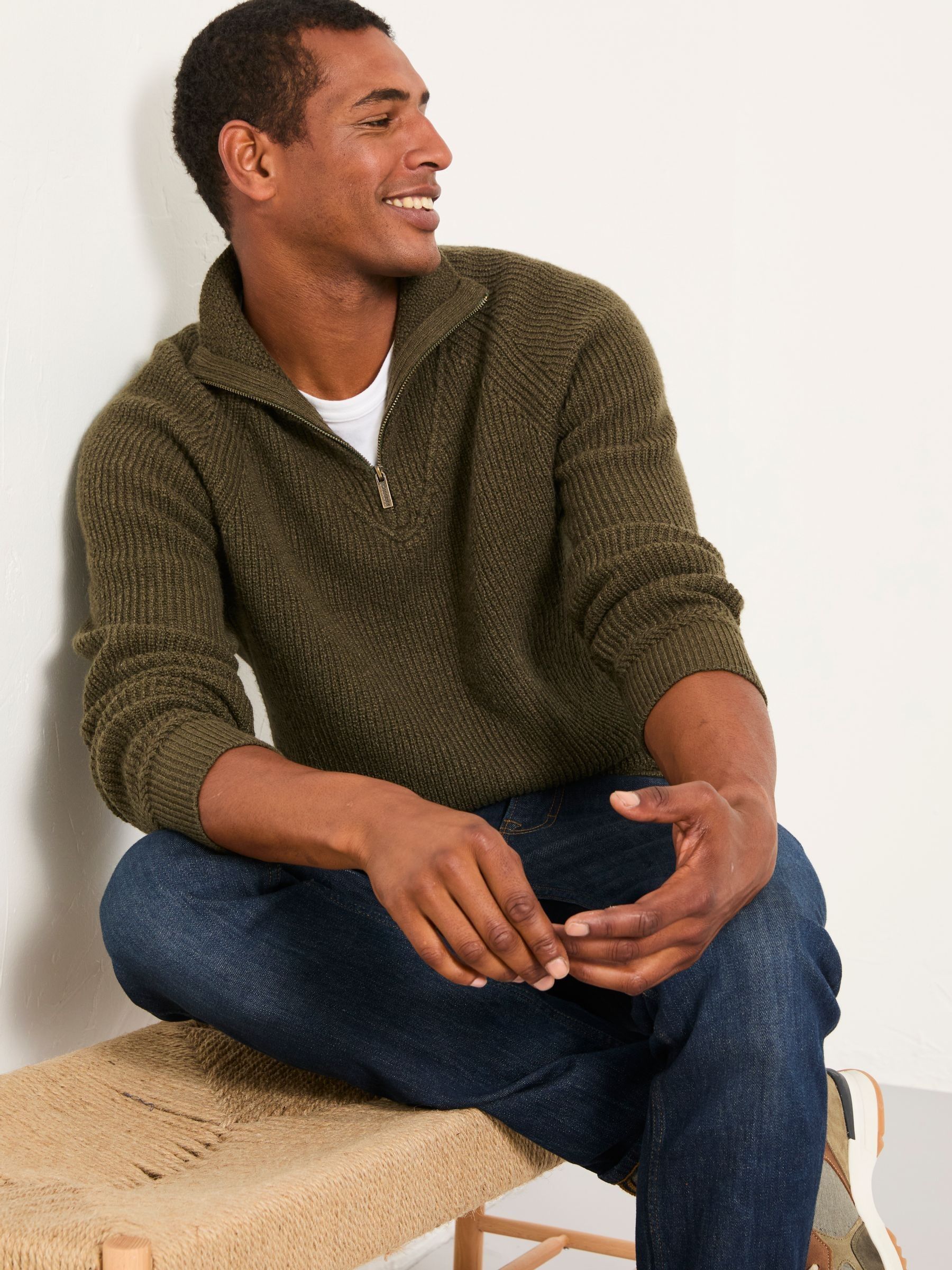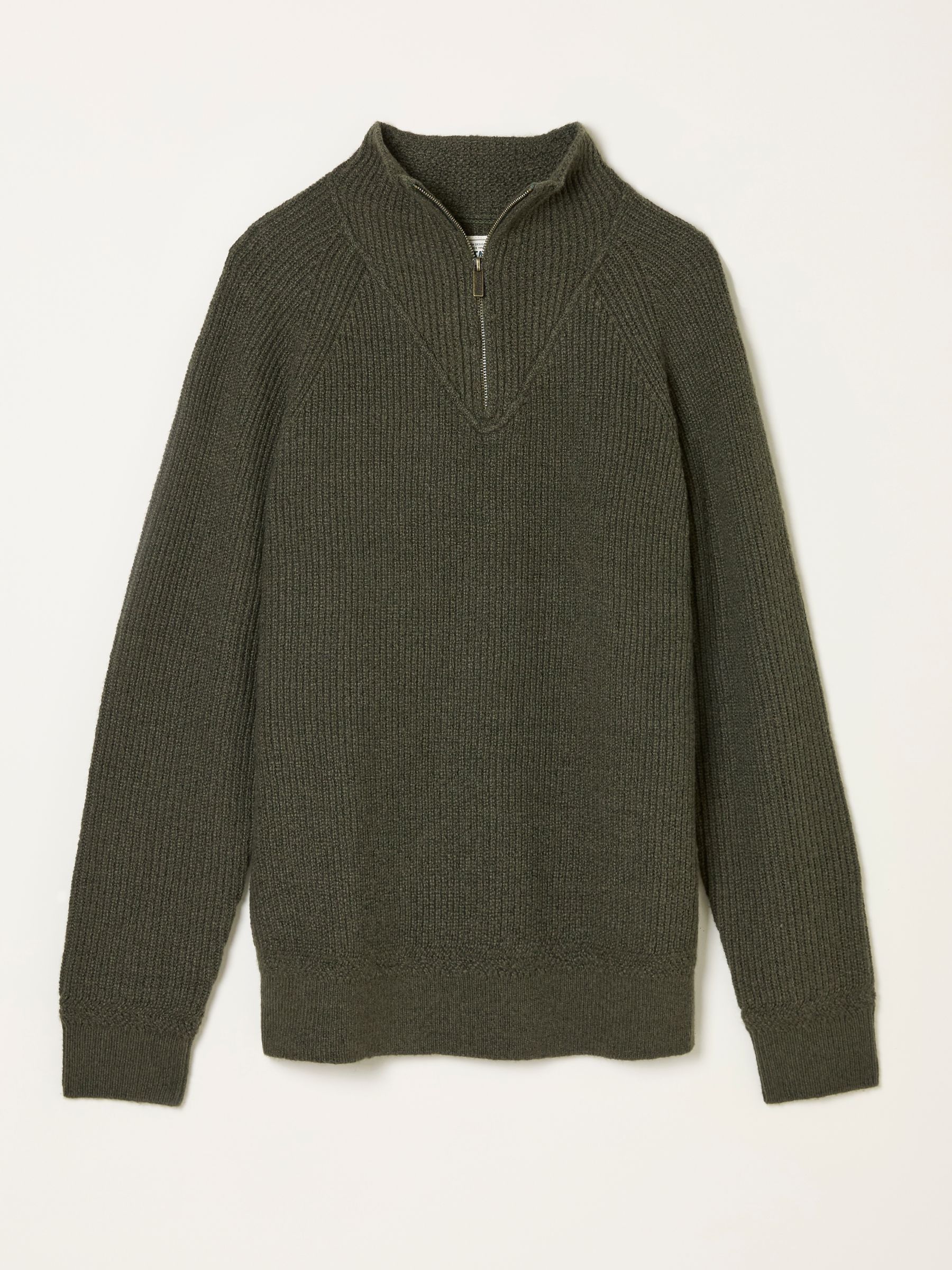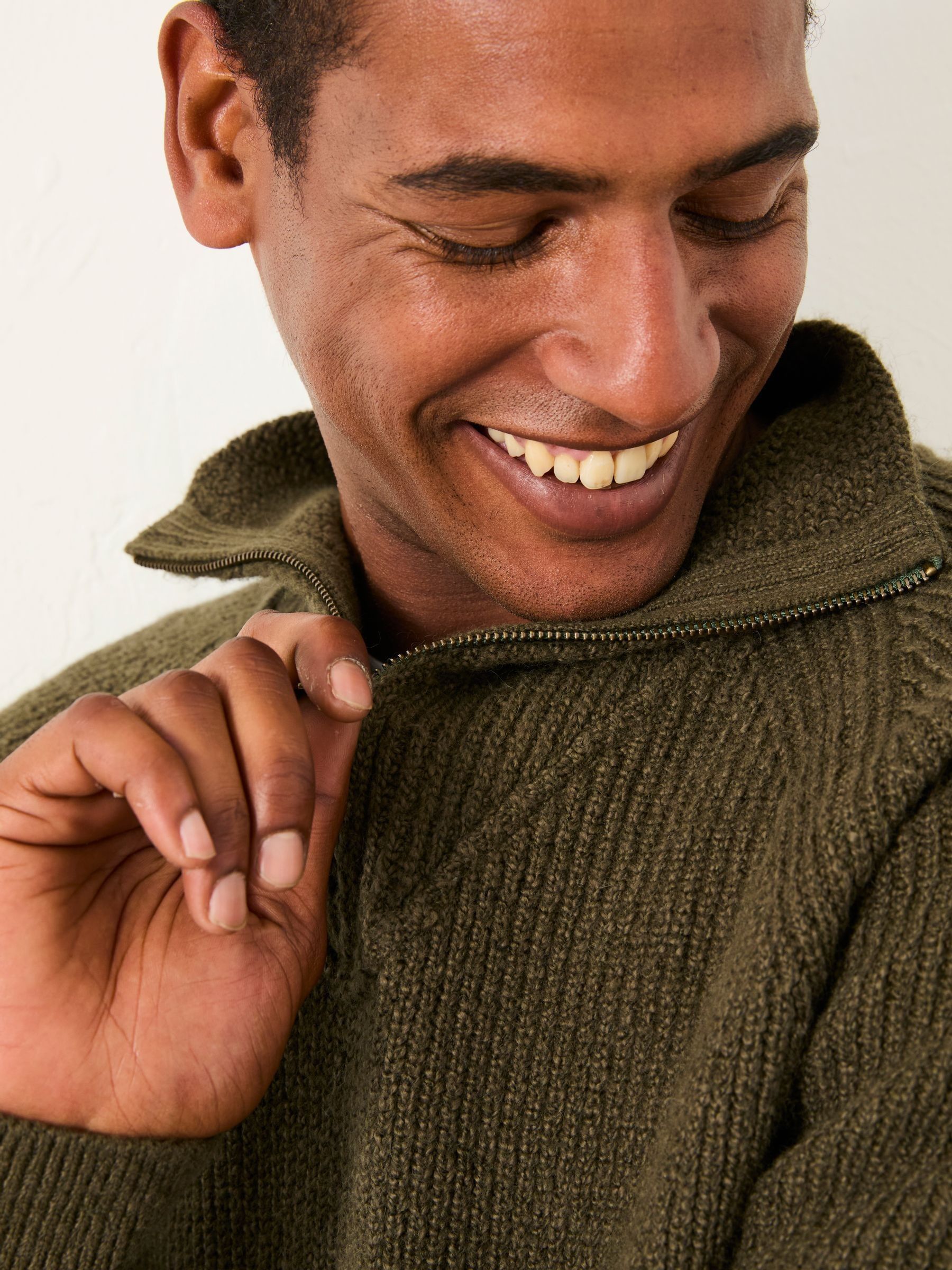 Fat Face Men’s Harwick Khaki Green Half Neck Knitted Jumper | Khaki Green