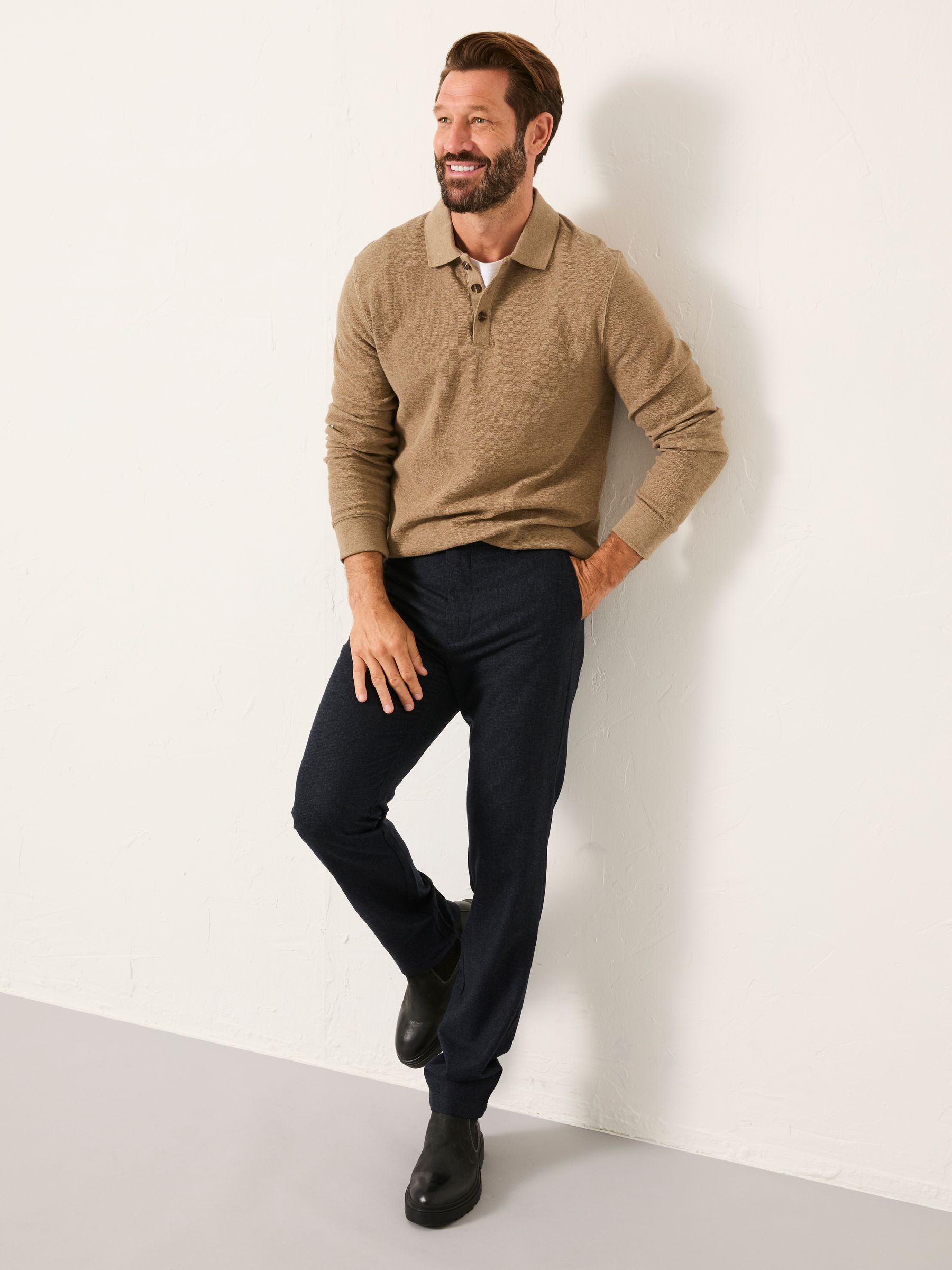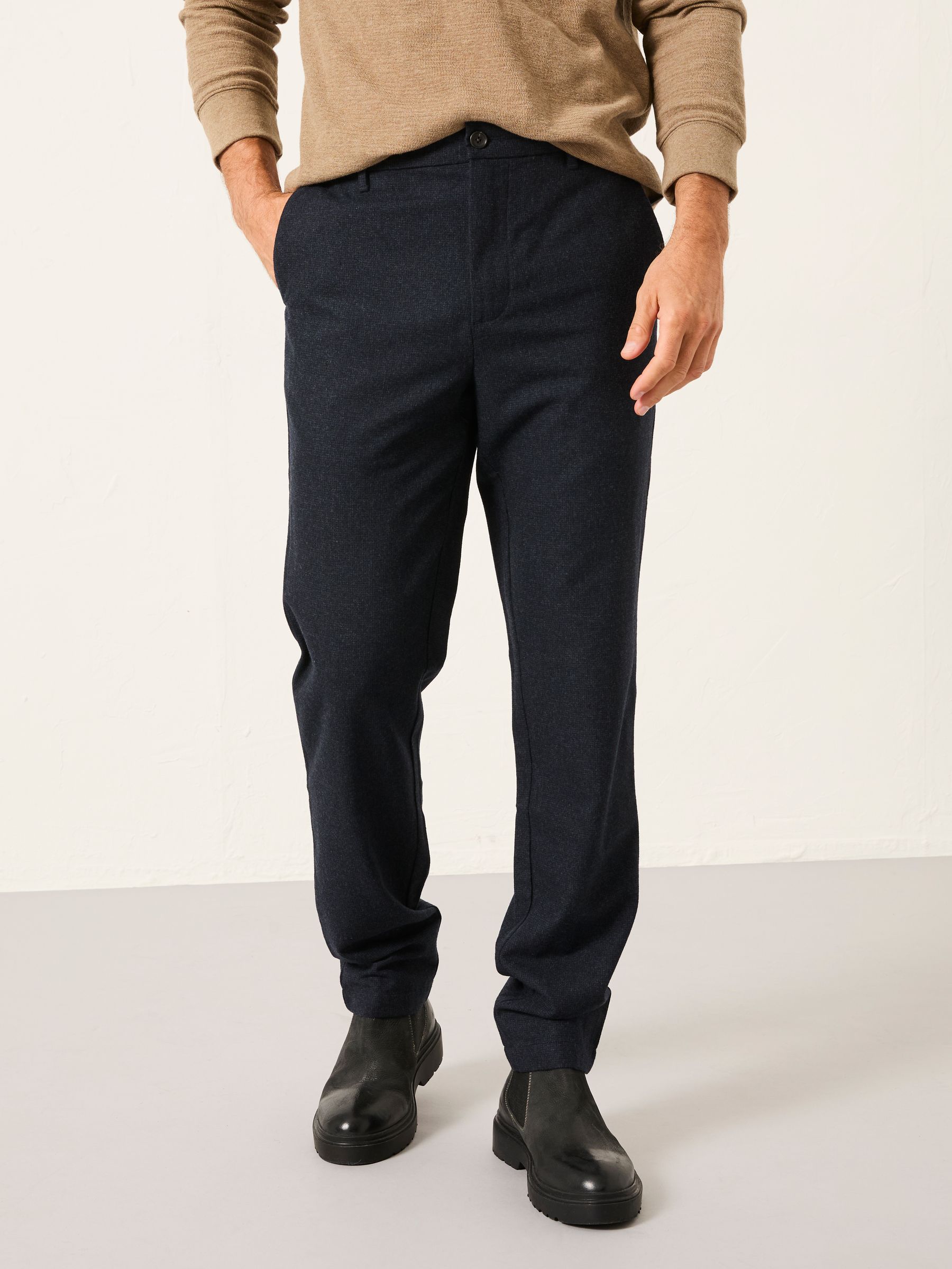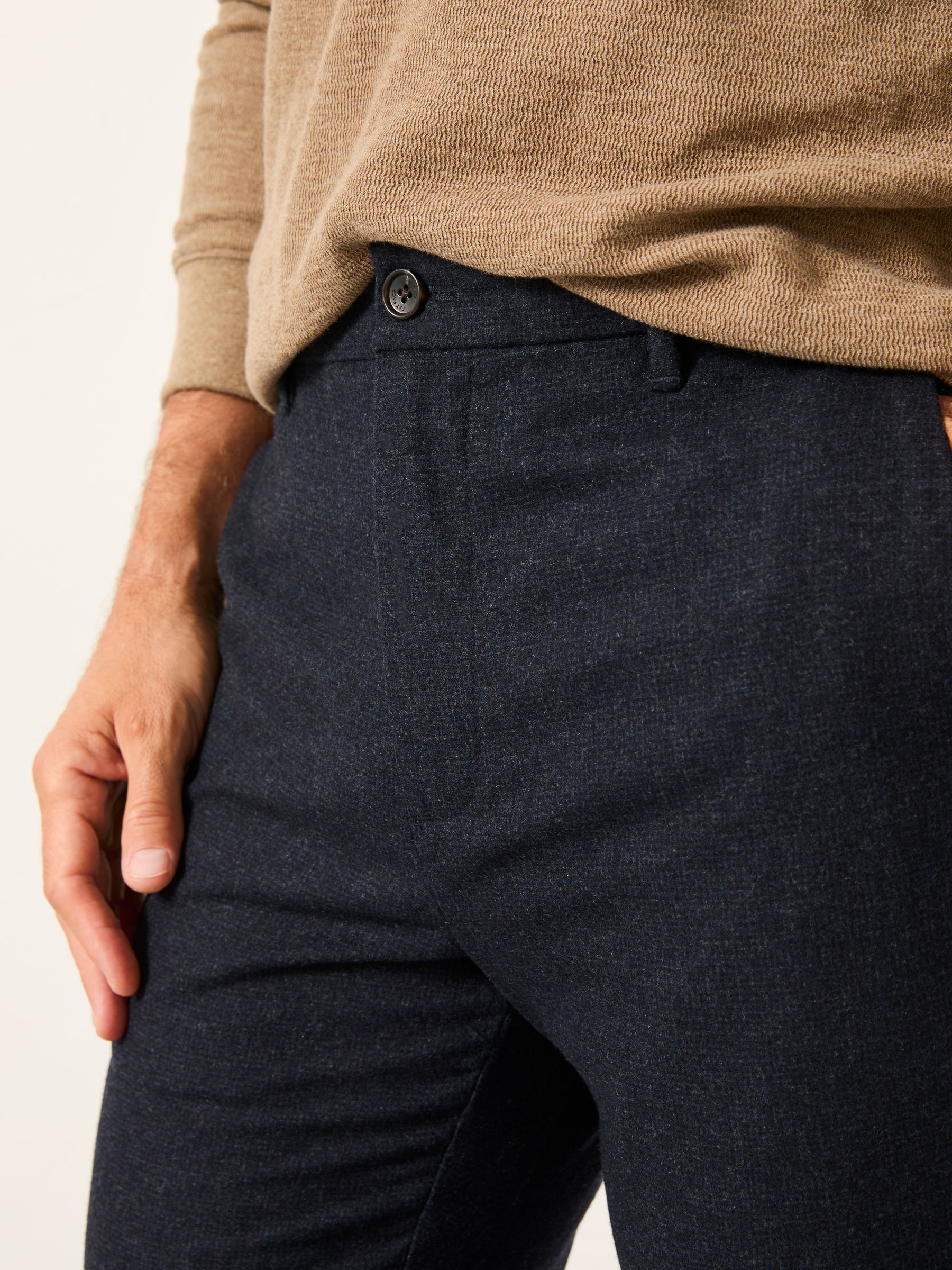 In our new tailored fit, our Lyme trousers are the smarter alternative to your overworked jeans. They come in a soft wool blend and are a mix between a straight and slim leg fit. They are easy to dress up or down, keep them casual with a shirt and graphic tee, or team them with a jumper for a smart evening look.Regular inside leg length 28.5" / 72cm.Long inside leg length 30.5" / 77cm.