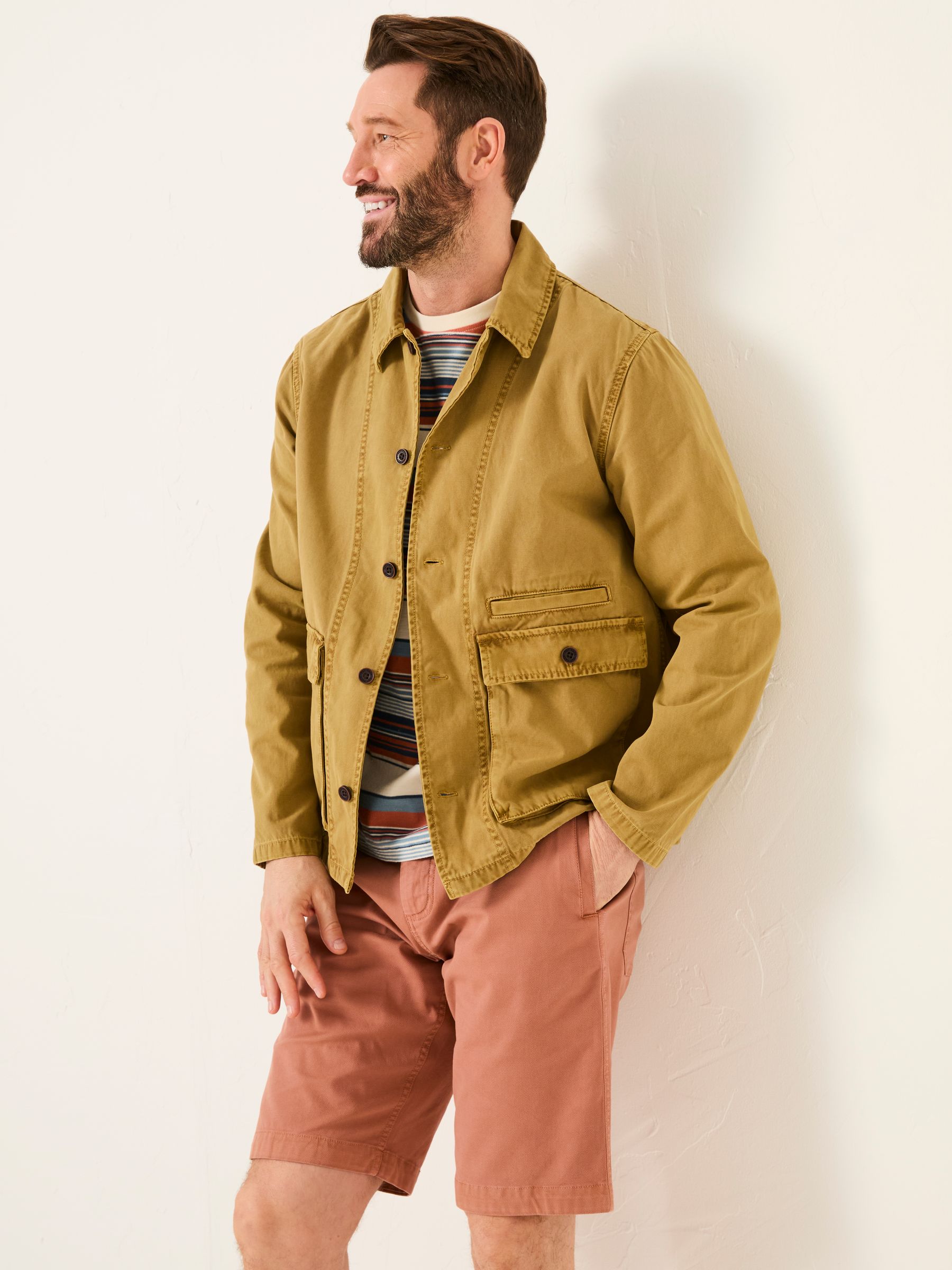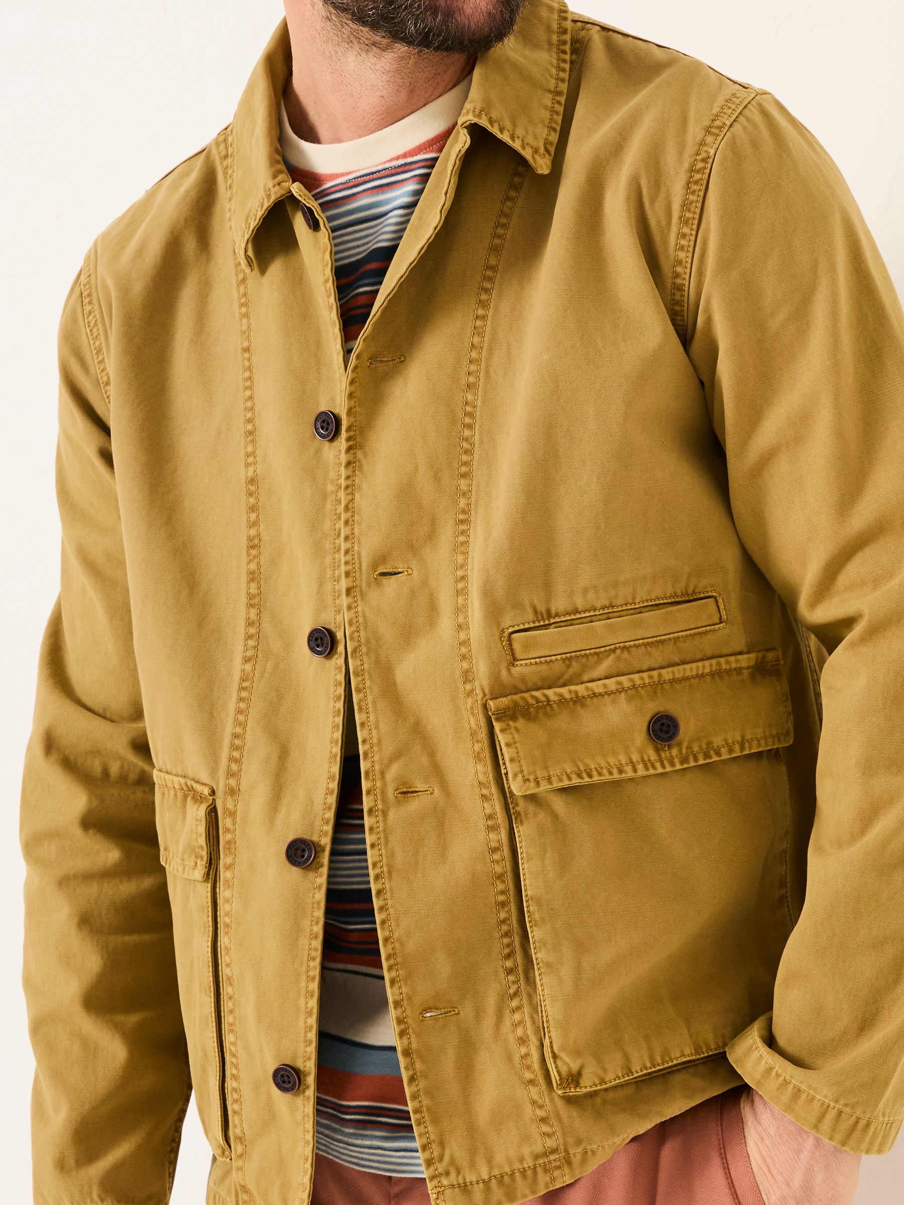 At FatFace, our jackets are designed for versatility and effortless styling for any occasion. This 100% cotton jacket is the perfect embodiment of utility style, with large pockets to store all your essentials, a lightweight feel, and stylish stitch detailing. It’s the ultimate seasonless staple to add to your wardrobe. Layer it over a knitted jumper for those chillier days or throw it on over a t-shirt for a relaxed, layered look. Crafted from 100% cotton, it’s soft, breathable, and comfortable for all-day wear.Model is 6’1”/185cm and wears UK size MRegular centre back neck to hem 28.5" / 73cm.