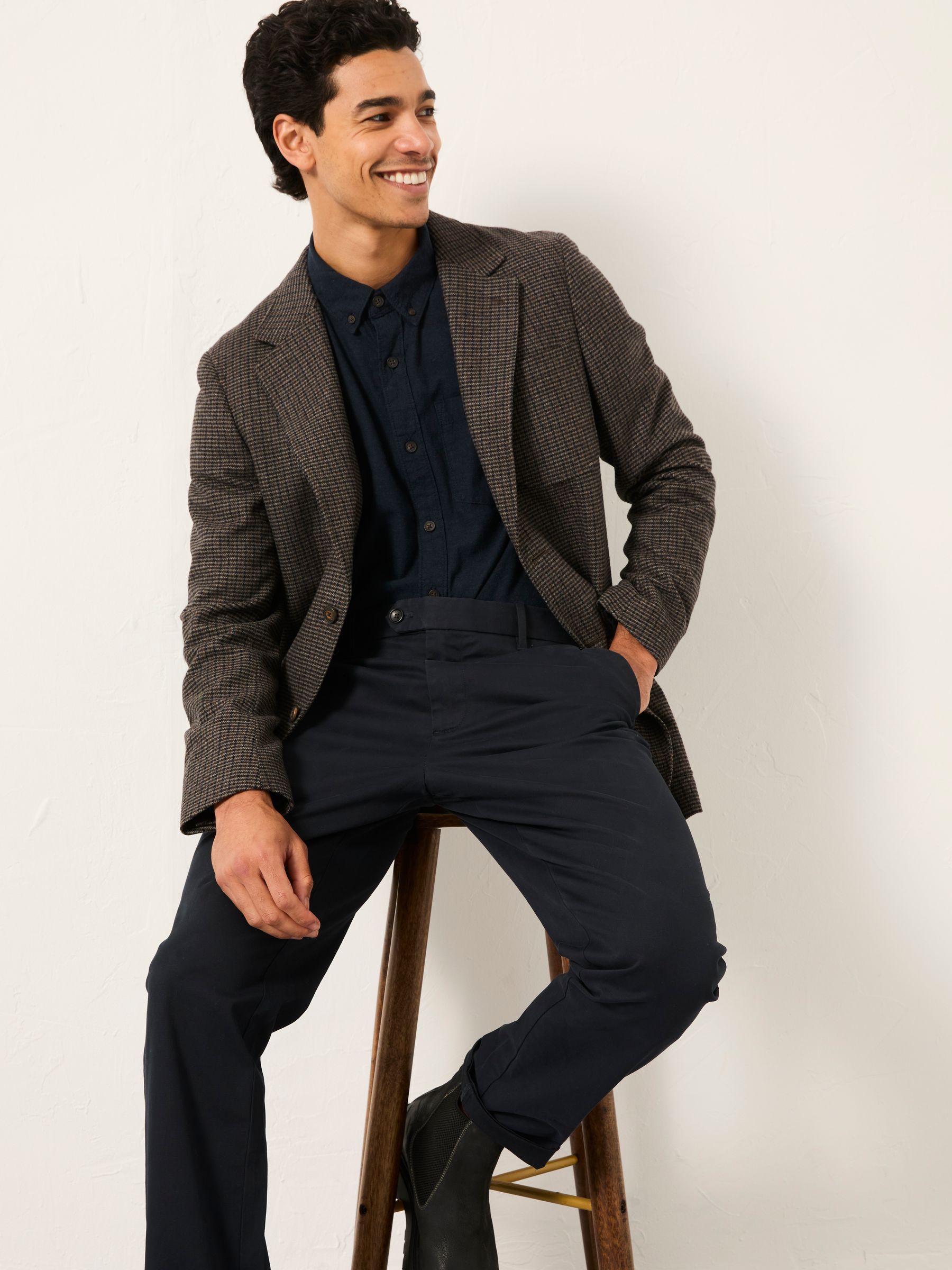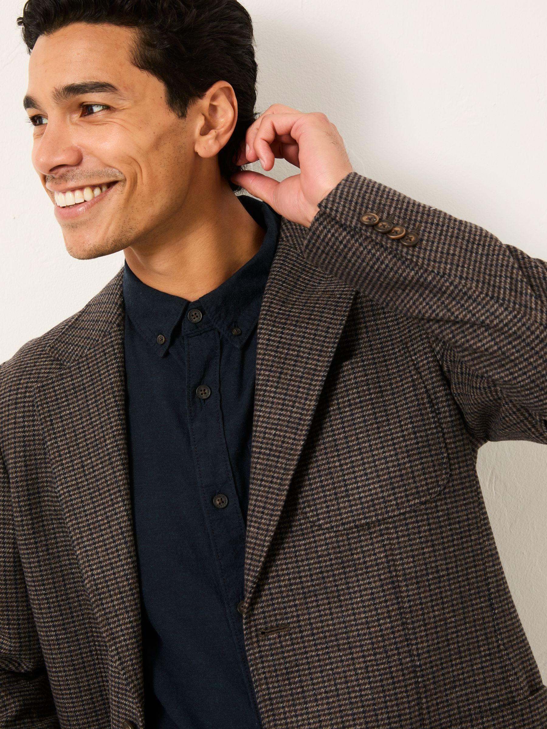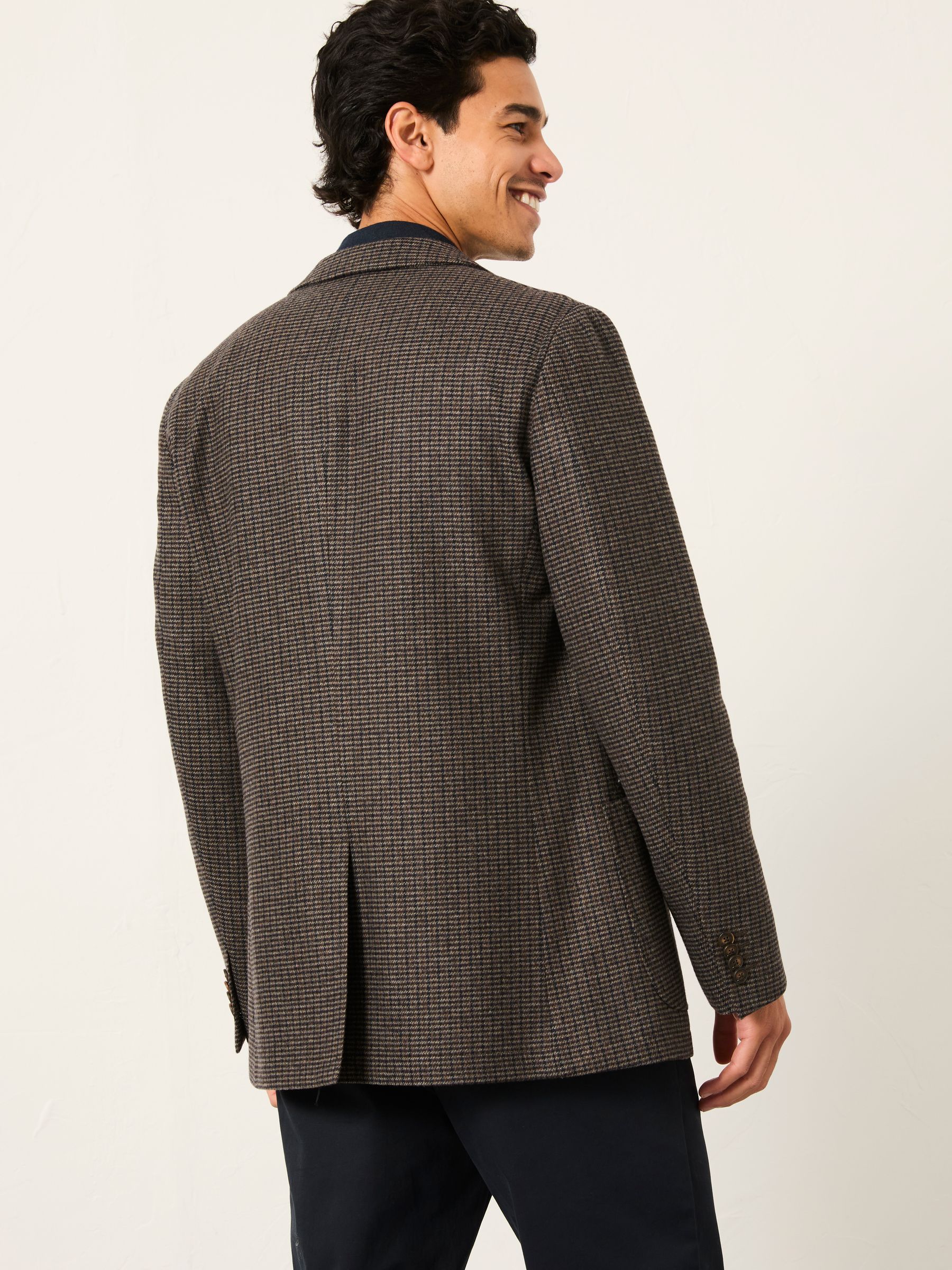 Fat Face Men’s Witley Brown Wool Mix Houndstooth Check Blazer
