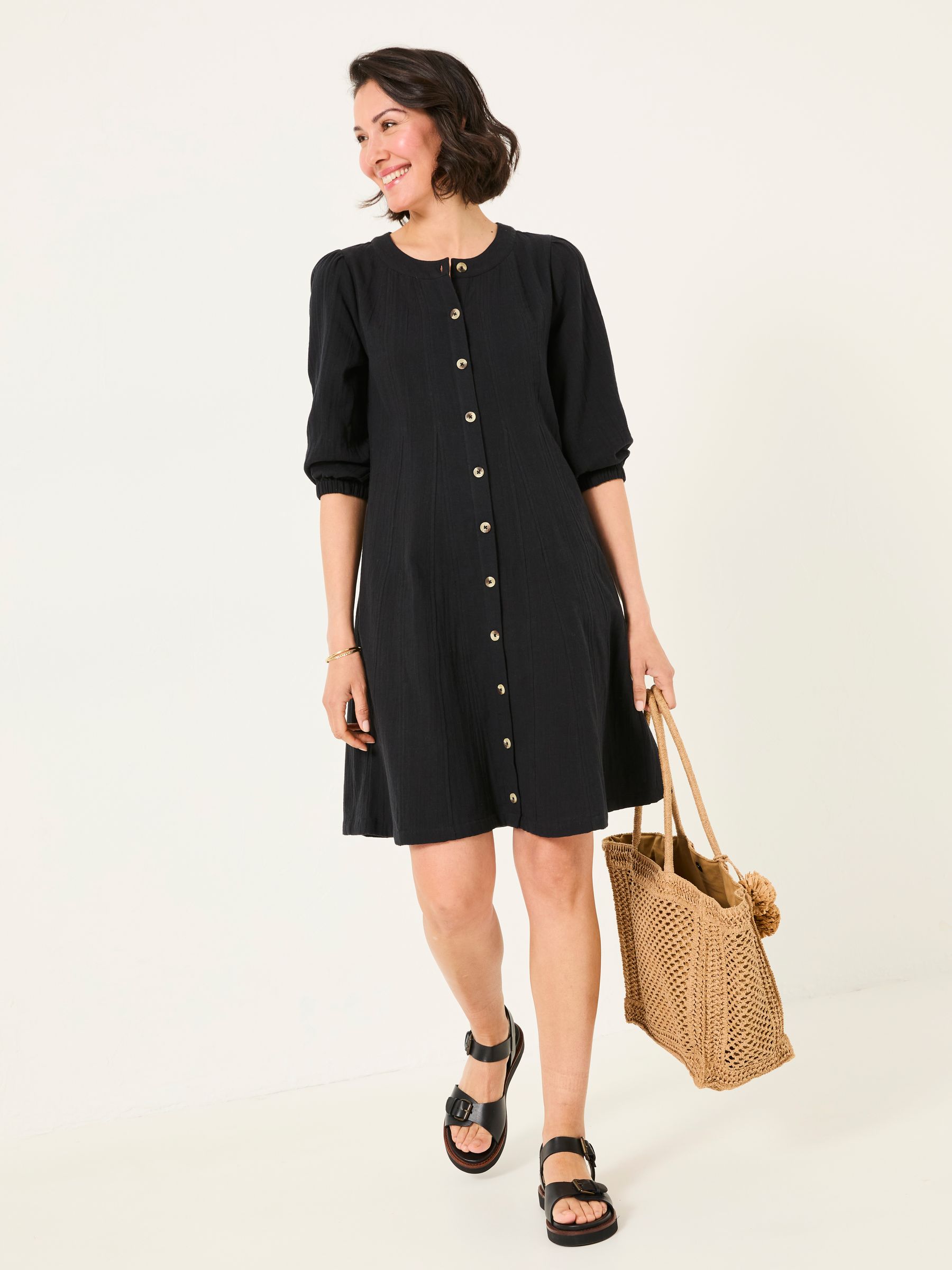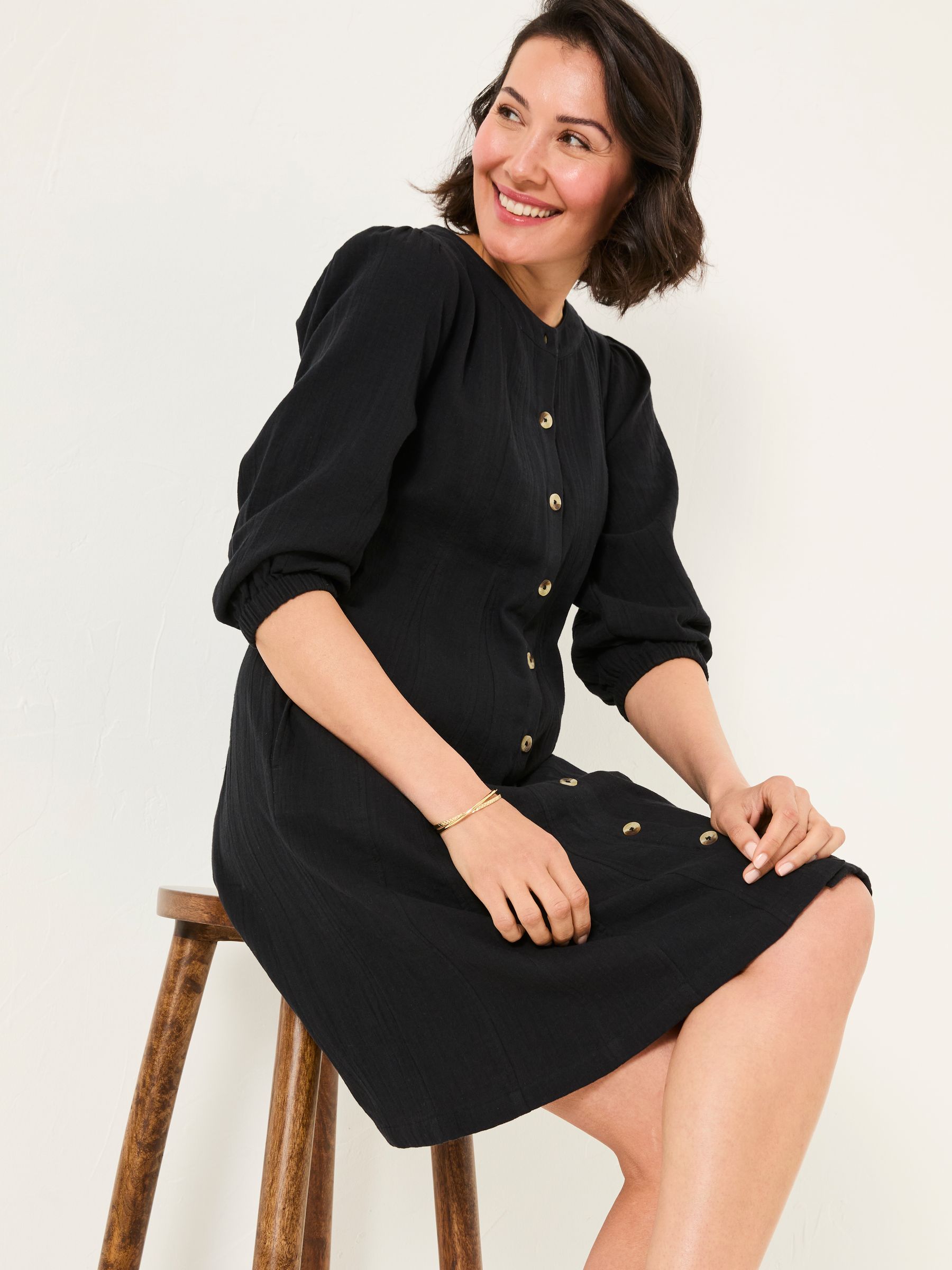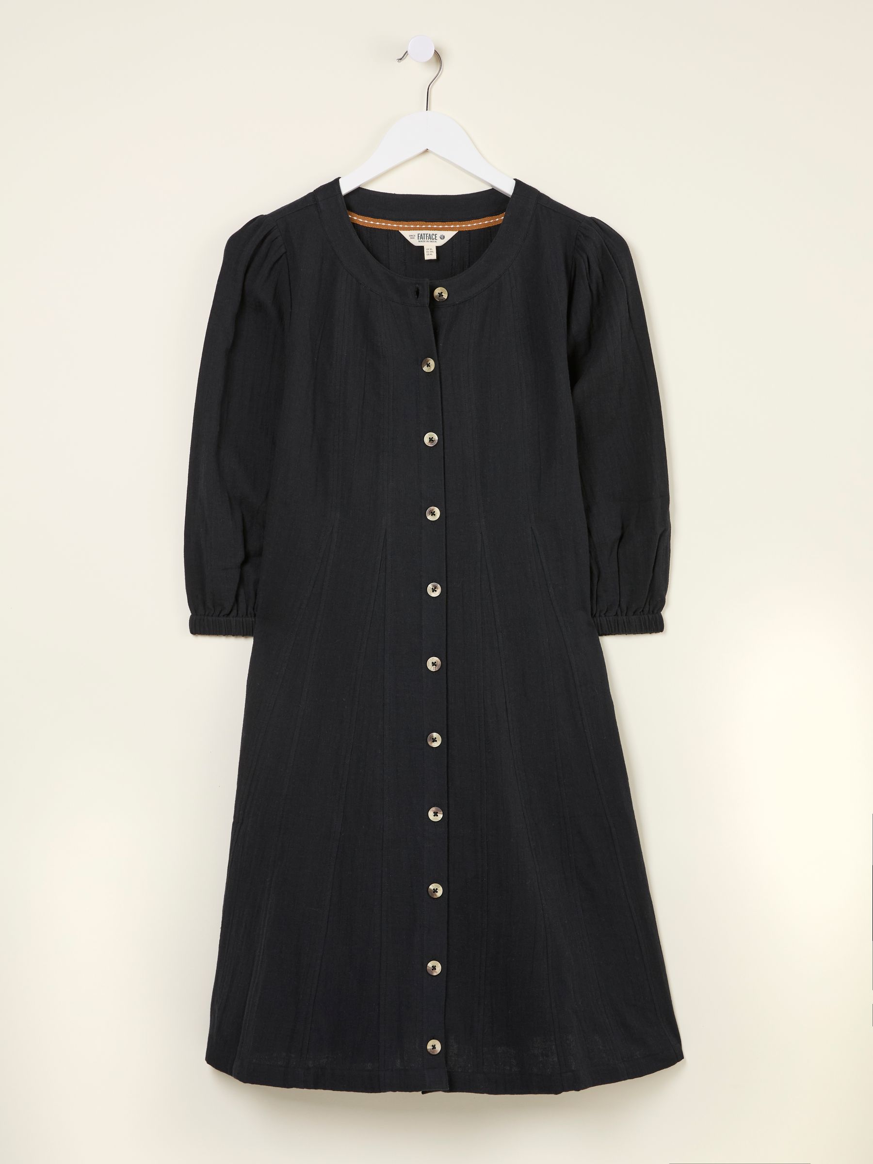 An easy going classic with thoughtful details. Our Anais dress features a button-down front, cuffed sleeves, and a flowy silhouette that moves with you. Crafted from 100% cotton the soft and breathable fabric keeps you cool and comfortable all day. From weekday lunches to weekend wandering – just add sandals and you’re set.Model is 5’8”/173cm and wears UK size 8 LongRegular side neck to hem 36" / 92cm.