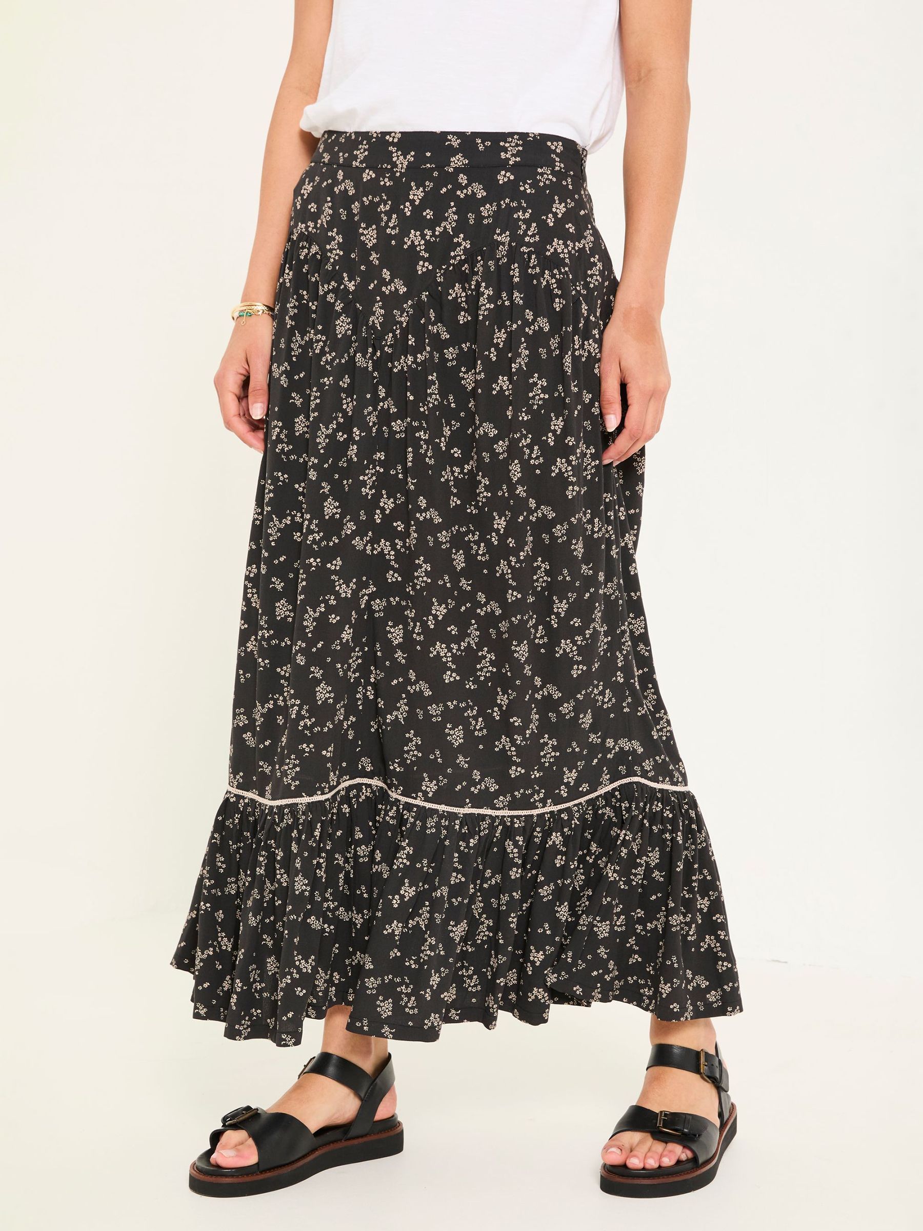 Stand out in style with our Aurielle maxi skirt. Made from soft fabrics, this skirt is comfortable and breathable, ideal for dressing up or down. With a dainty floral design, a flattering shape and length and a soft feel, it is the perfect transitional piece for your wardrobe. Wear on office days with tights and a blouse or to evening drinks with heels, this skirt is easy to style and look good in.Regular waistband to hem 37.5" / 95cm.