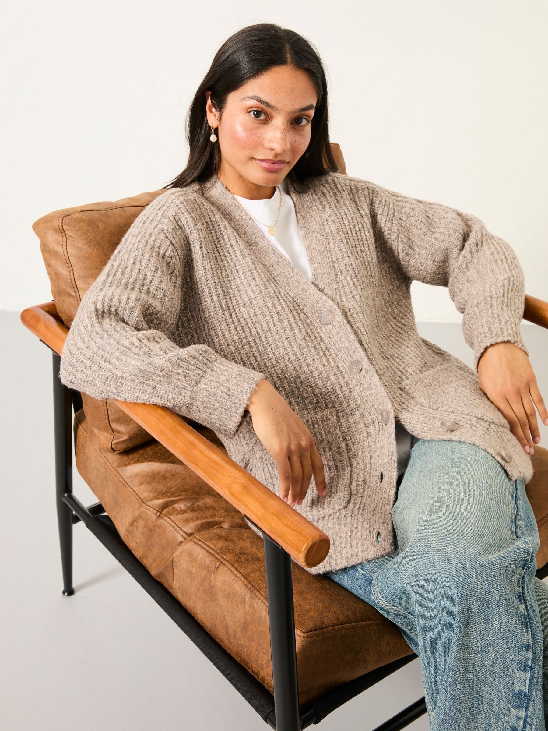 Fat Face Women’s Blanche Light Grey Oversized Knitted Cardigan | Light Grey