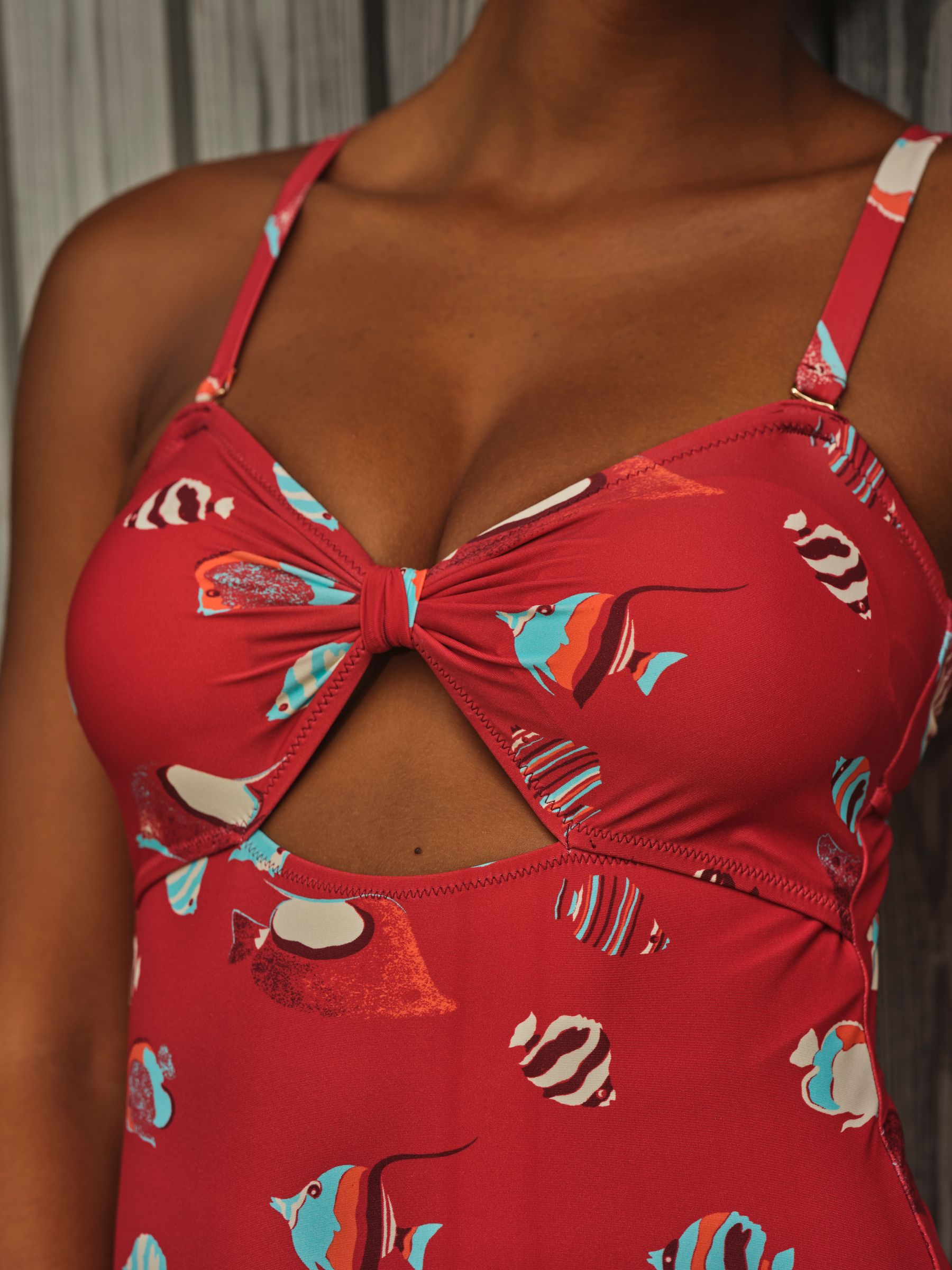 Fat Face Women’s Brook Red Shoal Print Swimsuit