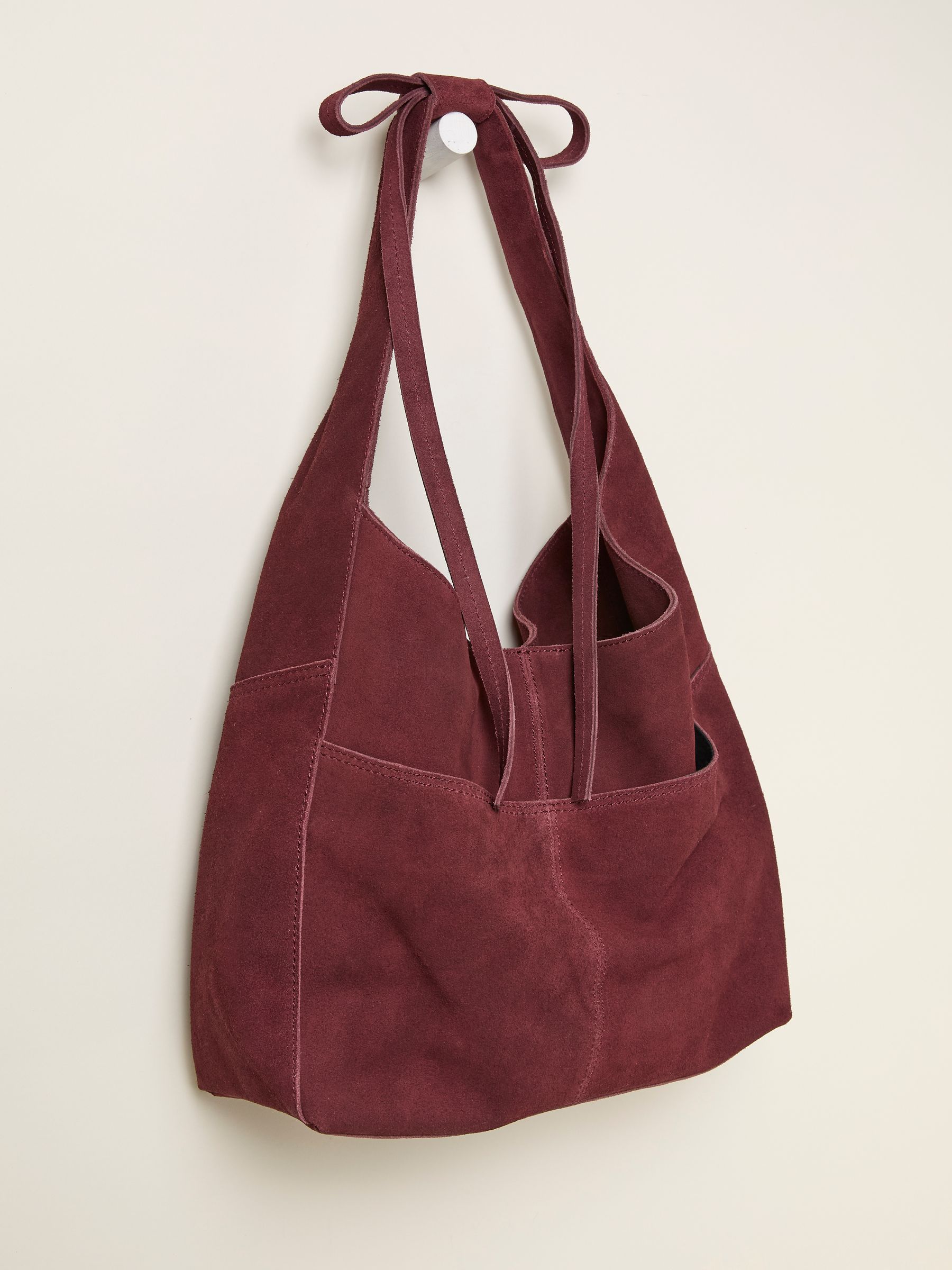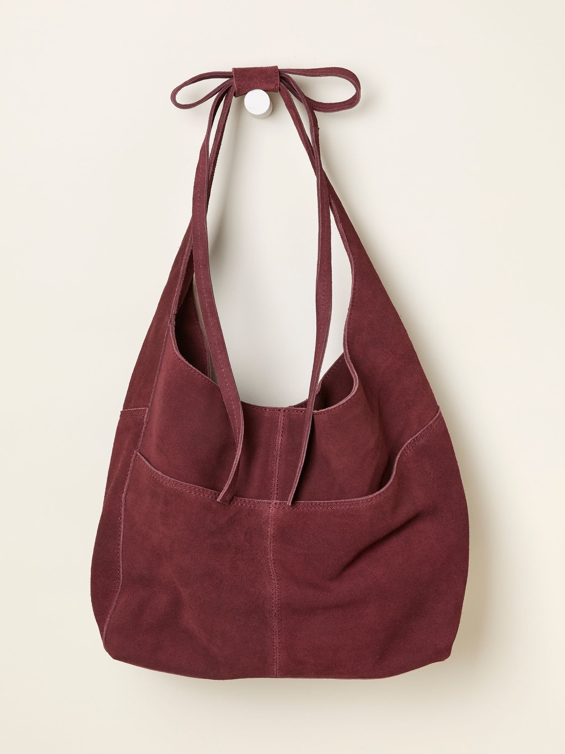 Fat Face Women’s Burgundy Red Suede Bow Handle Shoulder Bag