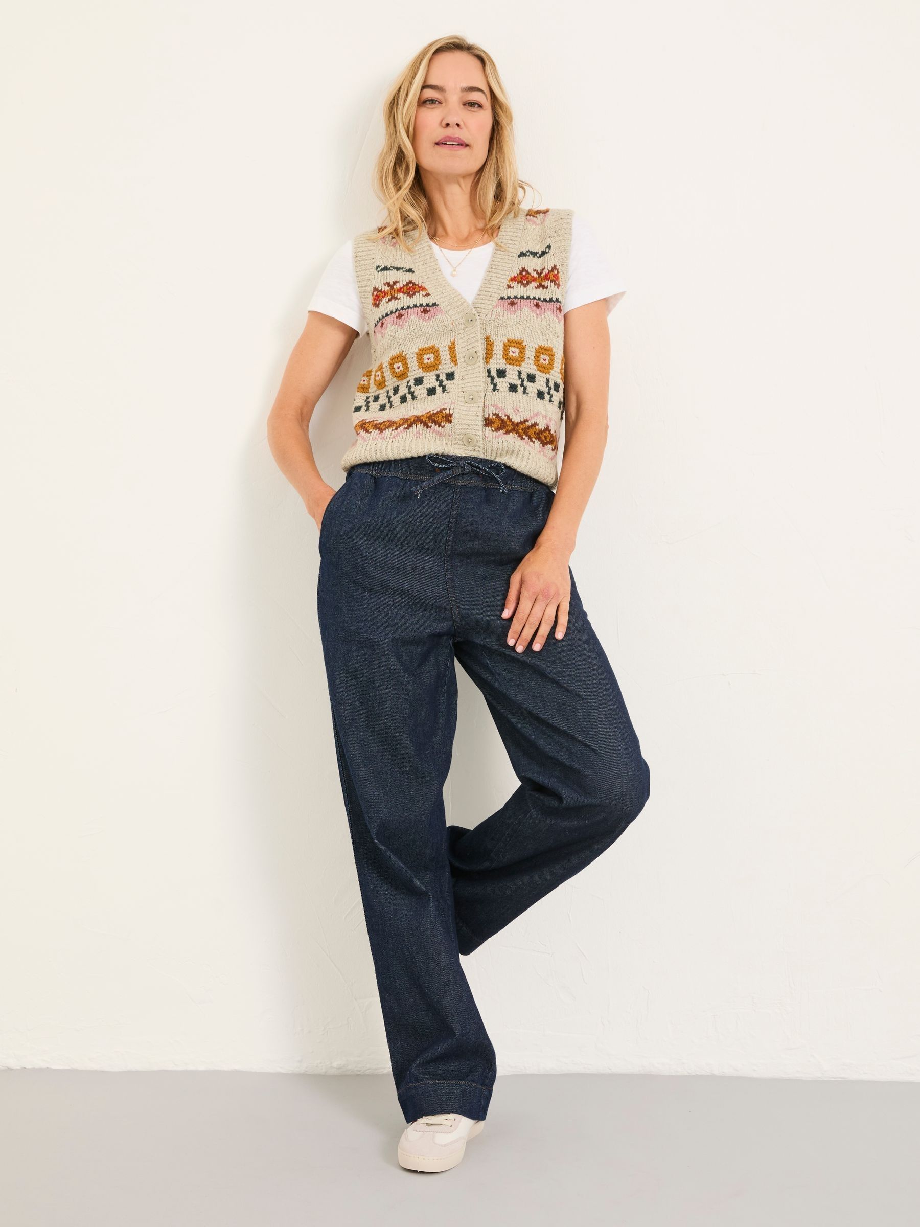 Introducing your new go-to denim: our Ashby straight leg jeans. They are perfect for casual occasions all year round. We’ve added a little bit of stretch for a super comfortable fit, and the denim is soft – just the way you like it. Flattering for all shapes and sizes, with a high-rise and full leg length, these jeans have a straight leg shape and a drawstring waist to give you a great fit every time. Whether you’re running errands, enjoying a weekend outing, or dressing up for date night, these jeans are a versatile wardrobe staple you’ll reach for again and again.Short inside leg length 27” / 69cm