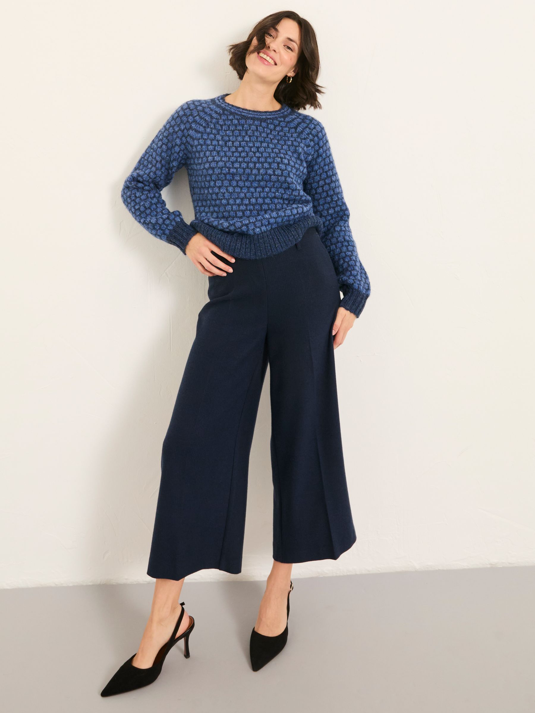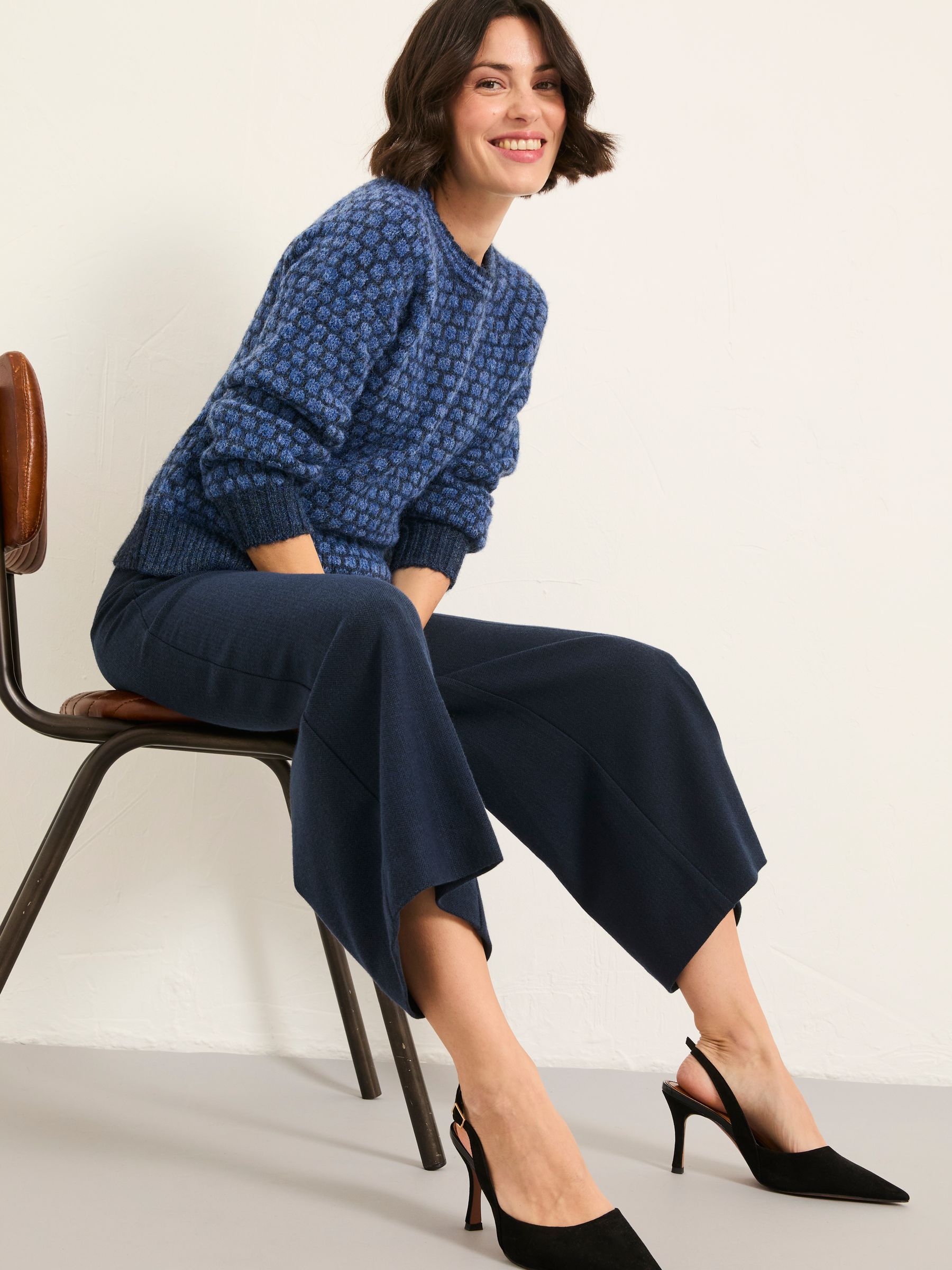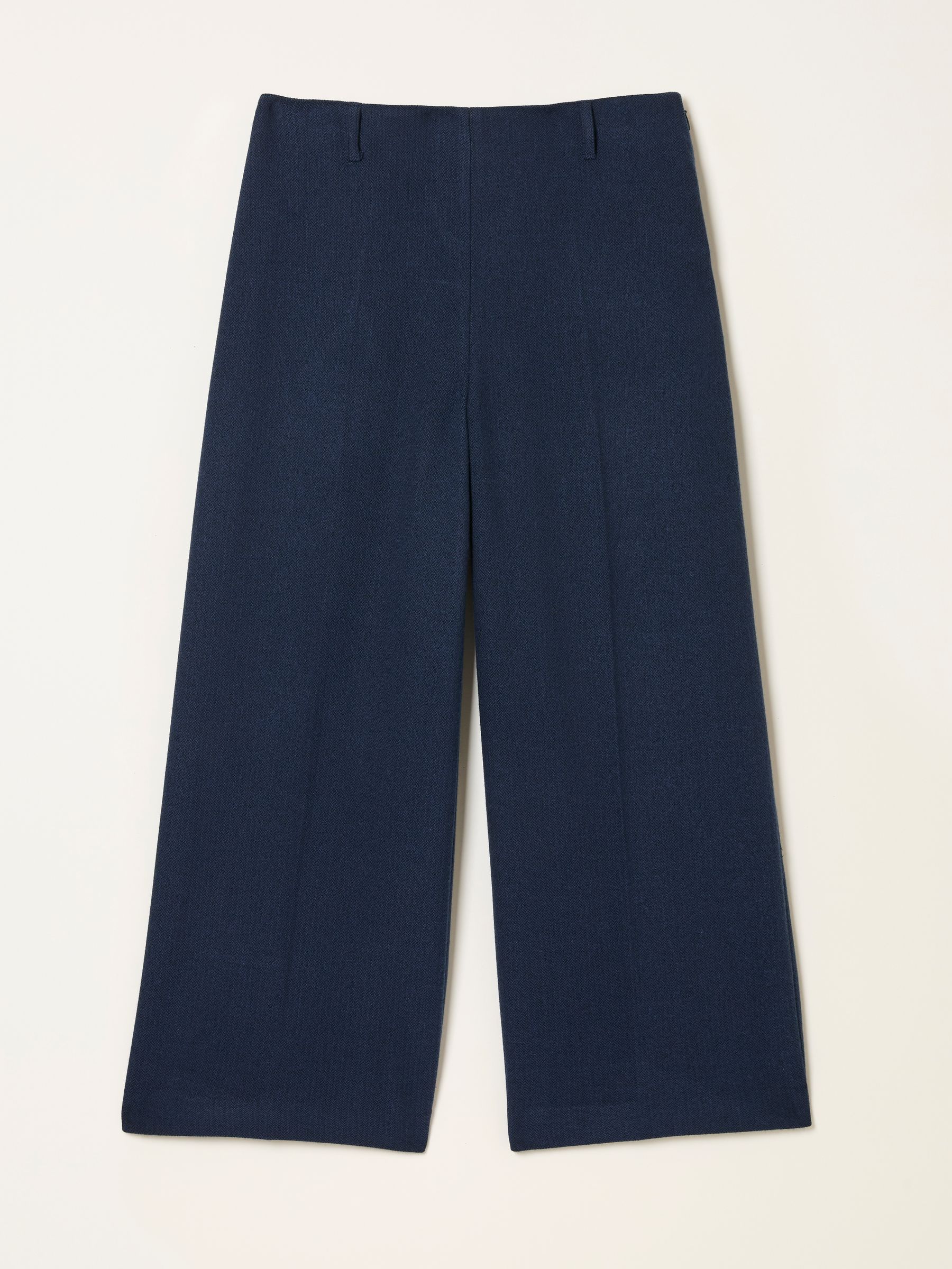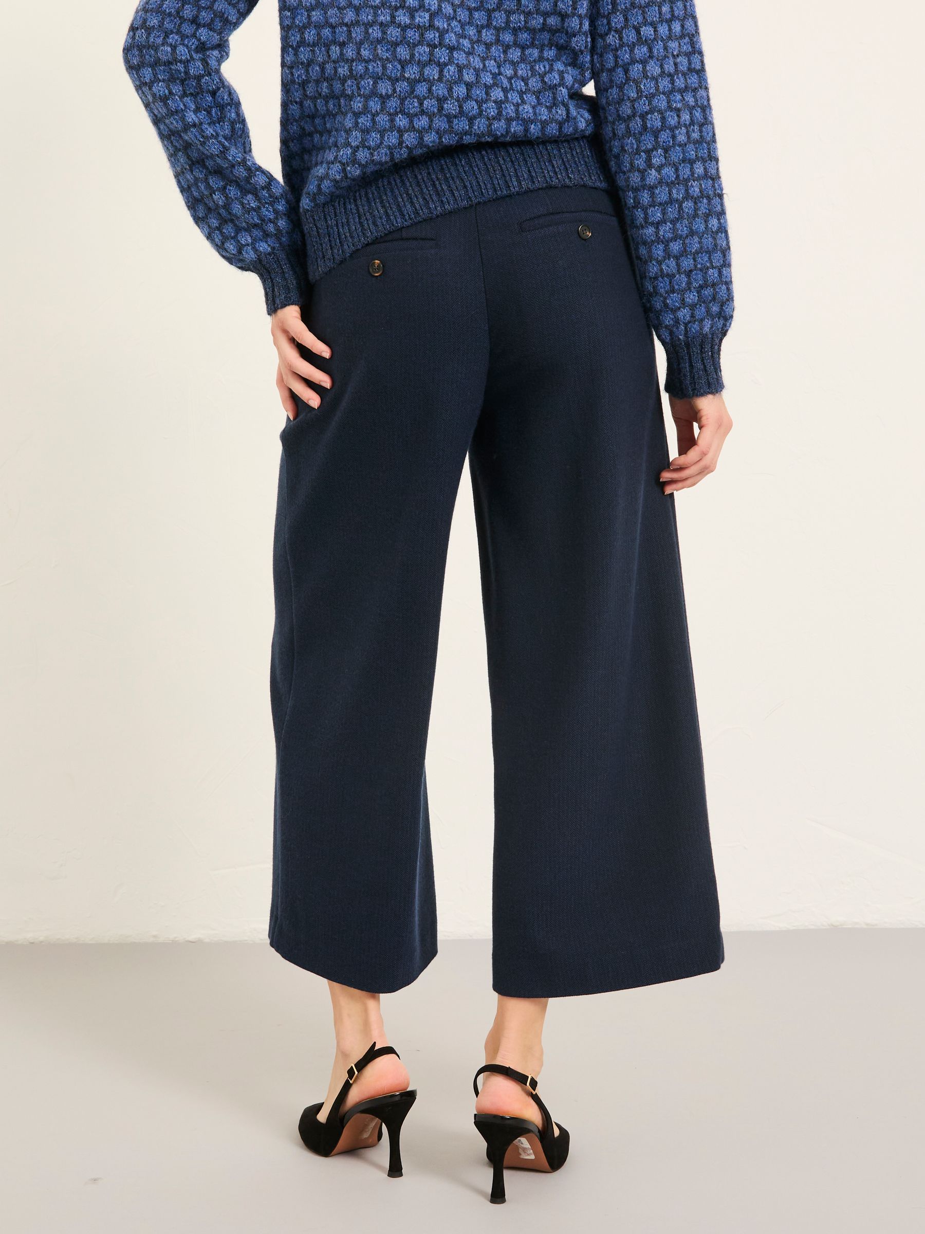 Looking for that perfect pair of trousers that are versatile and easy to style? Look no further. Our Dolly cropped wide leg trousers are the perfect mix of smart and casual. Their sleek silhouette makes them an effortless choice to look put together for dinner and drinks or office days, just pair with a blouse and some loafers. But their soft fabric makes them easy to dress down if paired with trainers and your favourite comfy sweatshirt. With a wide leg shape, these trousers offer a flattering fit while remaining lightweight and comfortable enough to wear all day.Short inside leg length 21" / 53cm.Regular inside leg length 23" / 58cm.Long inside leg length 25" / 63cm.