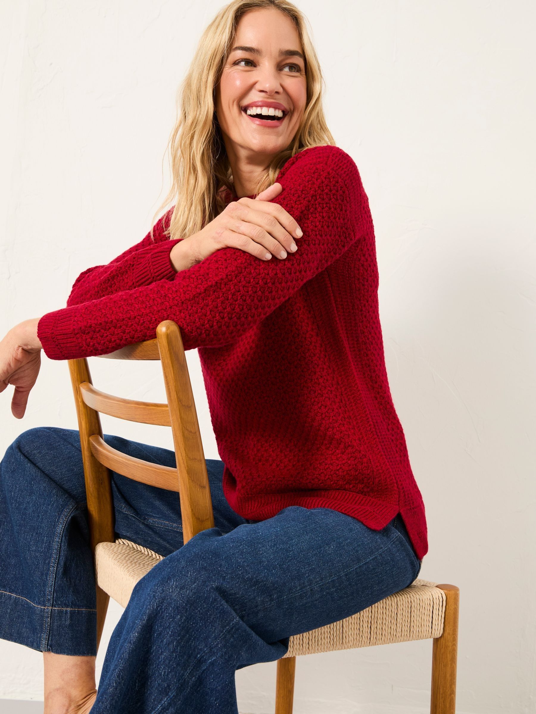 Add depth and comfort to your everyday wardrobe with our Ella textured knitted jumper. Featuring a rich, dimensional knit and a relaxed silhouette, it’s the perfect blend of cosy and stylish. Whether you’re layering it over jeans for a casual coffee run or pairing it with tailored trousers for a laid-back office look, this jumper brings warmth and effortless charm to every part of your day.Model is 5’9”/175cm and wears UK size 8