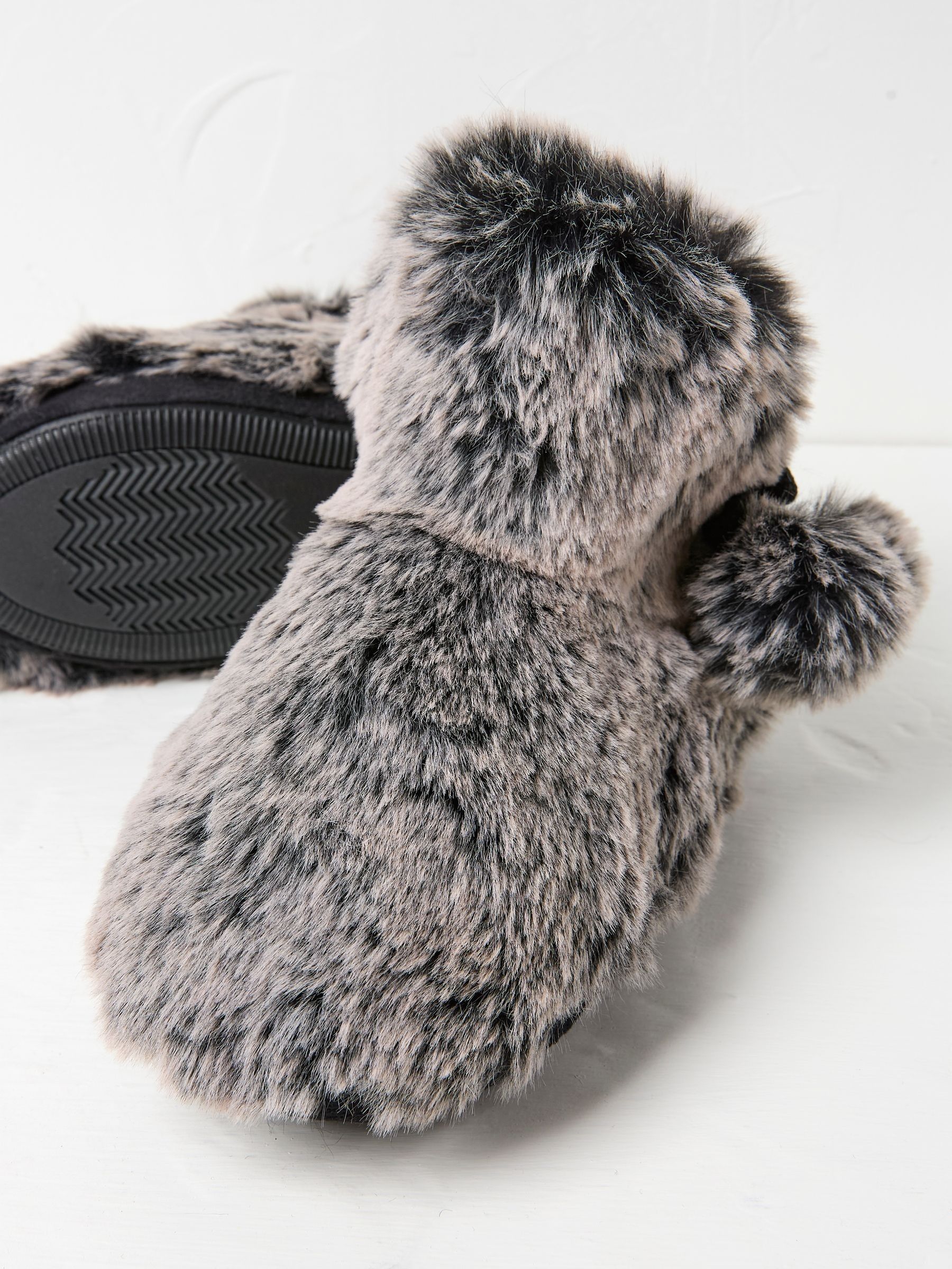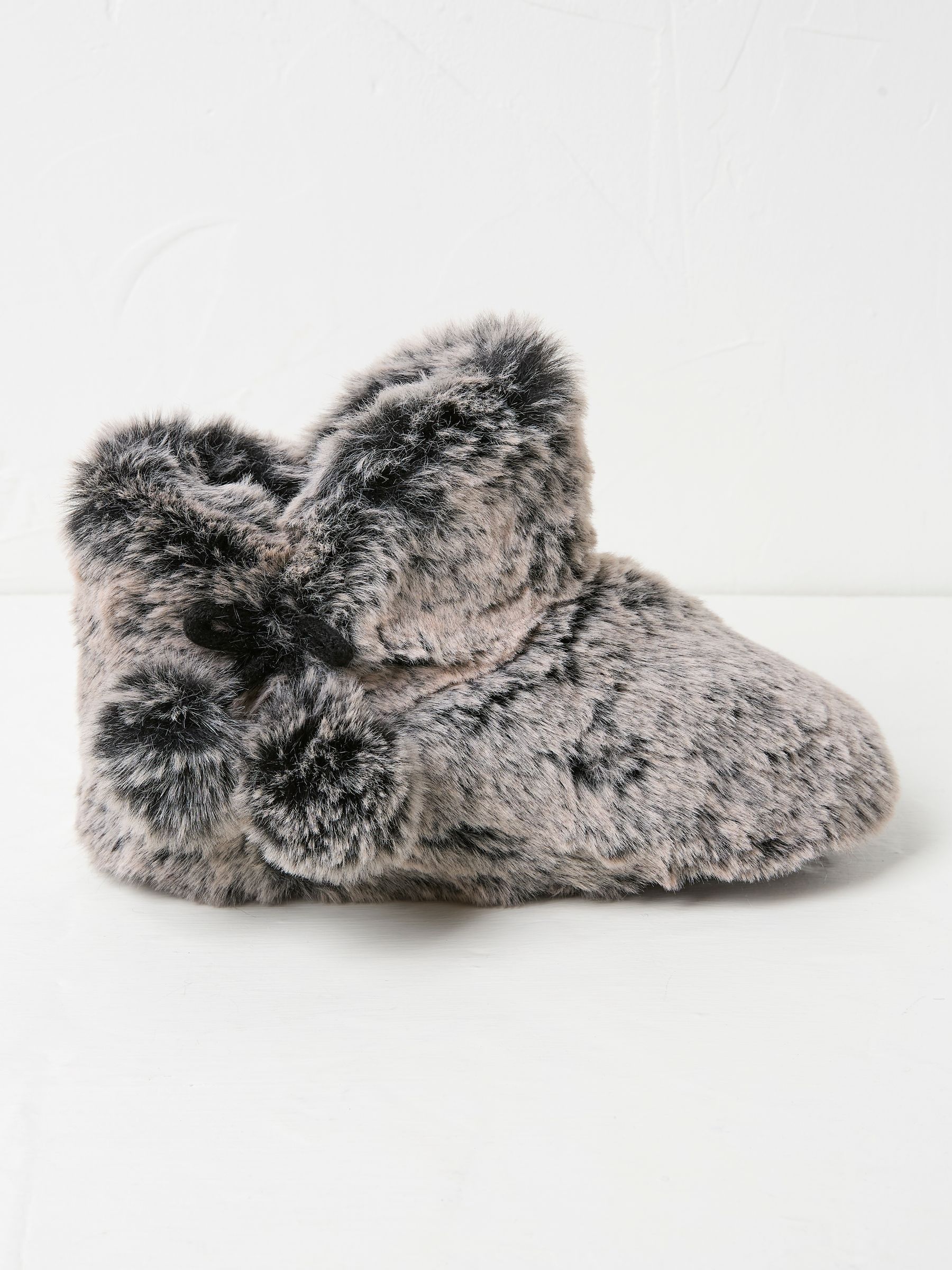 Lounging around just got a whole lot oatmeal cosier. Covered in fluffy faux fur, our Farah Fur Boots are super soft and comfortable, with rubber soles for grip and a cute pompom that s just for fun.