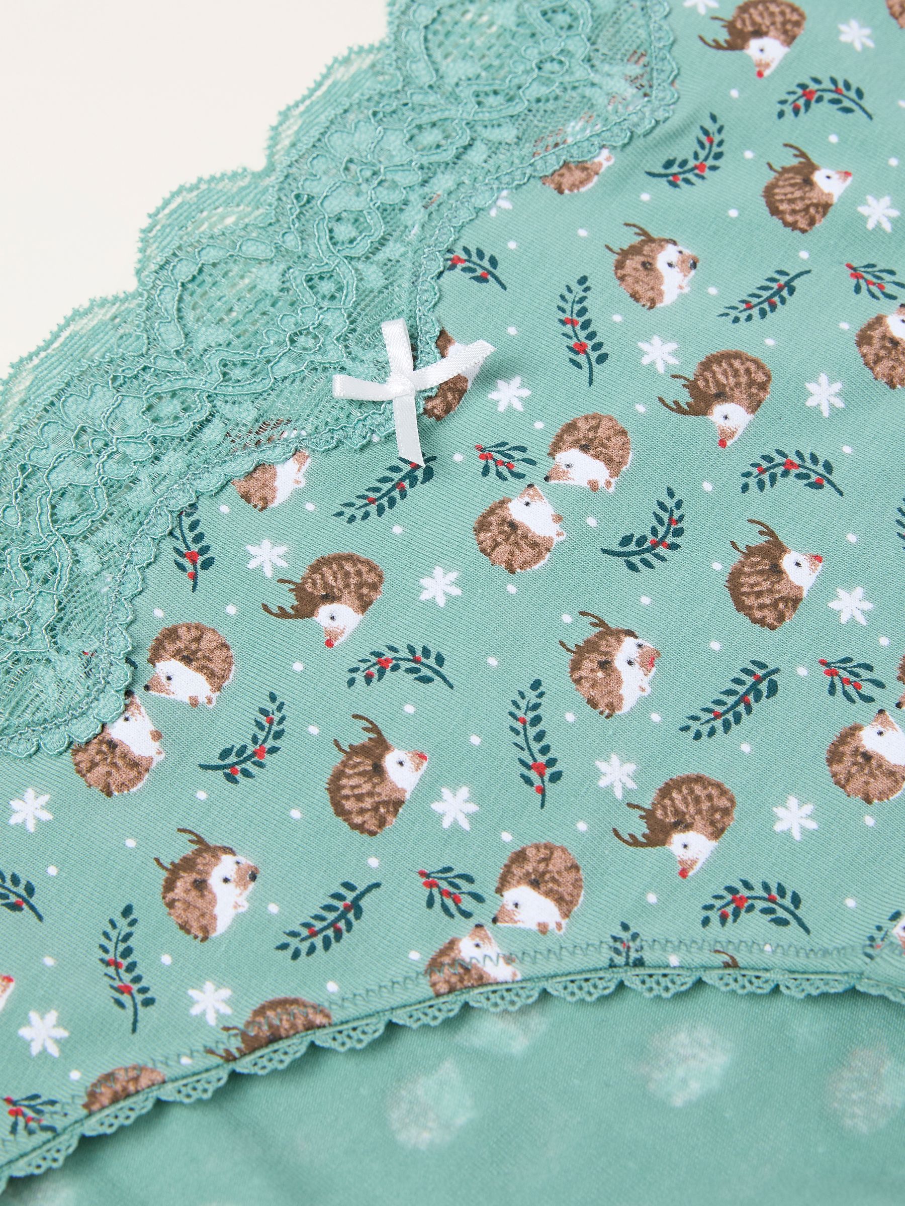 Fat Face Women’s Green Haze Festive Hedgehog Classic Knickers