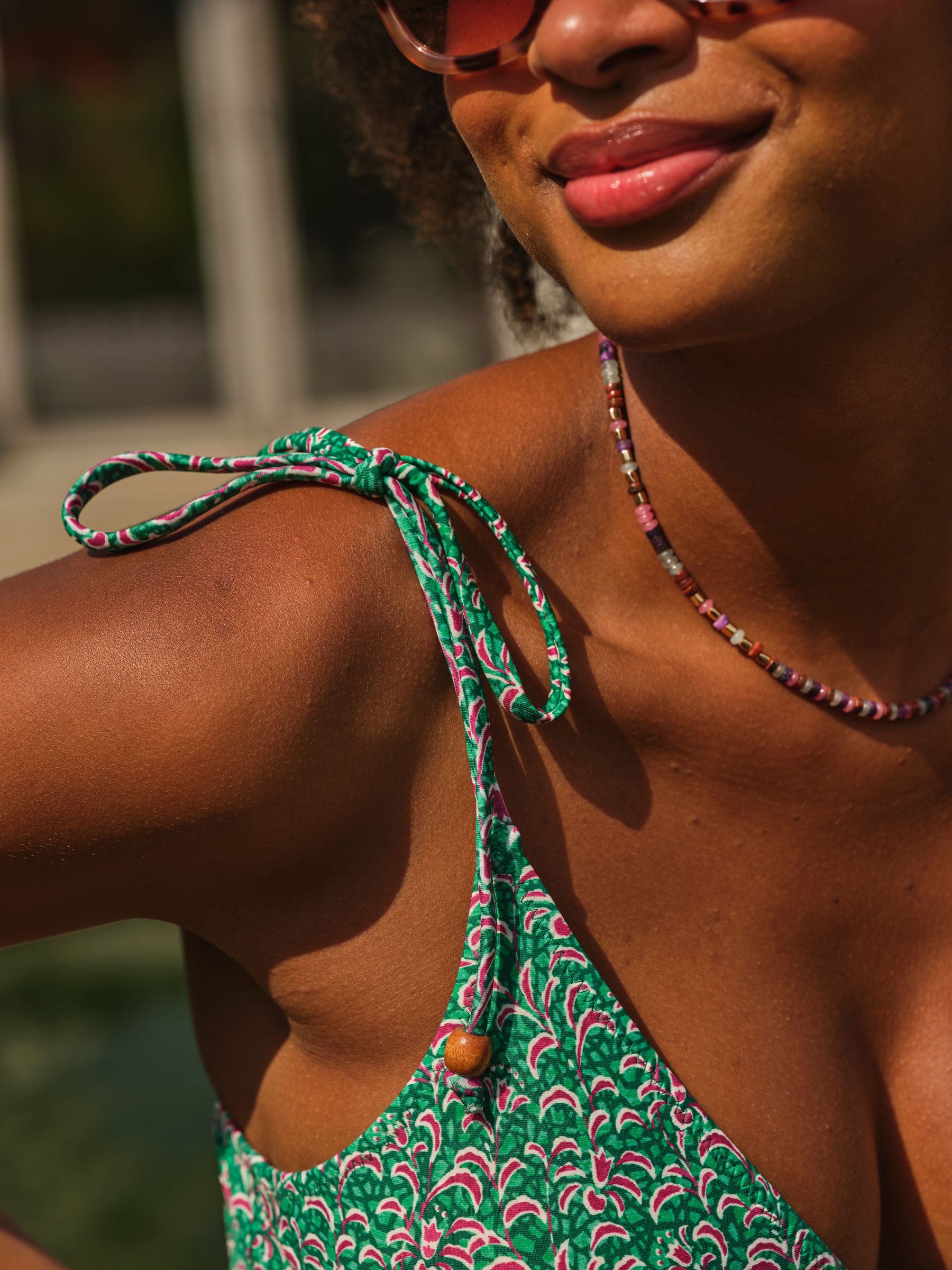 Fat Face Women’s Green Saye Vine Floral Print Reversible Bikini Top