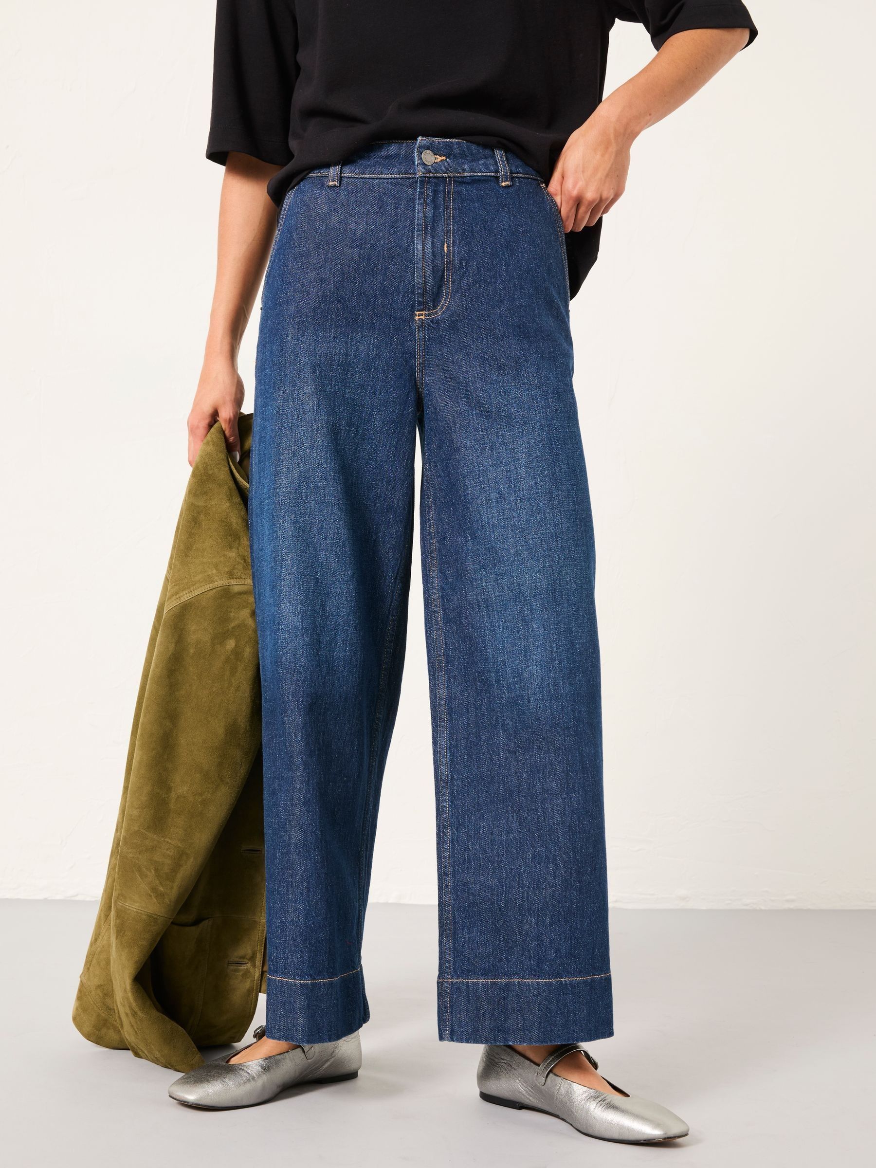 There’s a reason we love wide-leg jeans so much – because they’re oh-so-flattering on all shapes and sizes! And the Hove denim crops are no exception. Finished in a timeless blue wash that looks good with all your favourite tops, jumpers and blouses, they have side-entry pockets for practicality, belt loops and a classic zip fly with a button fastening. The leg is loose and relaxed, just the way you like it.Short inside leg length 23.5” / 60cmRegular inside leg length 25.5” / 65cmLong inside leg length 27.5” / 70cmModel is 5ft 8”/173cm and wears UK size 8.