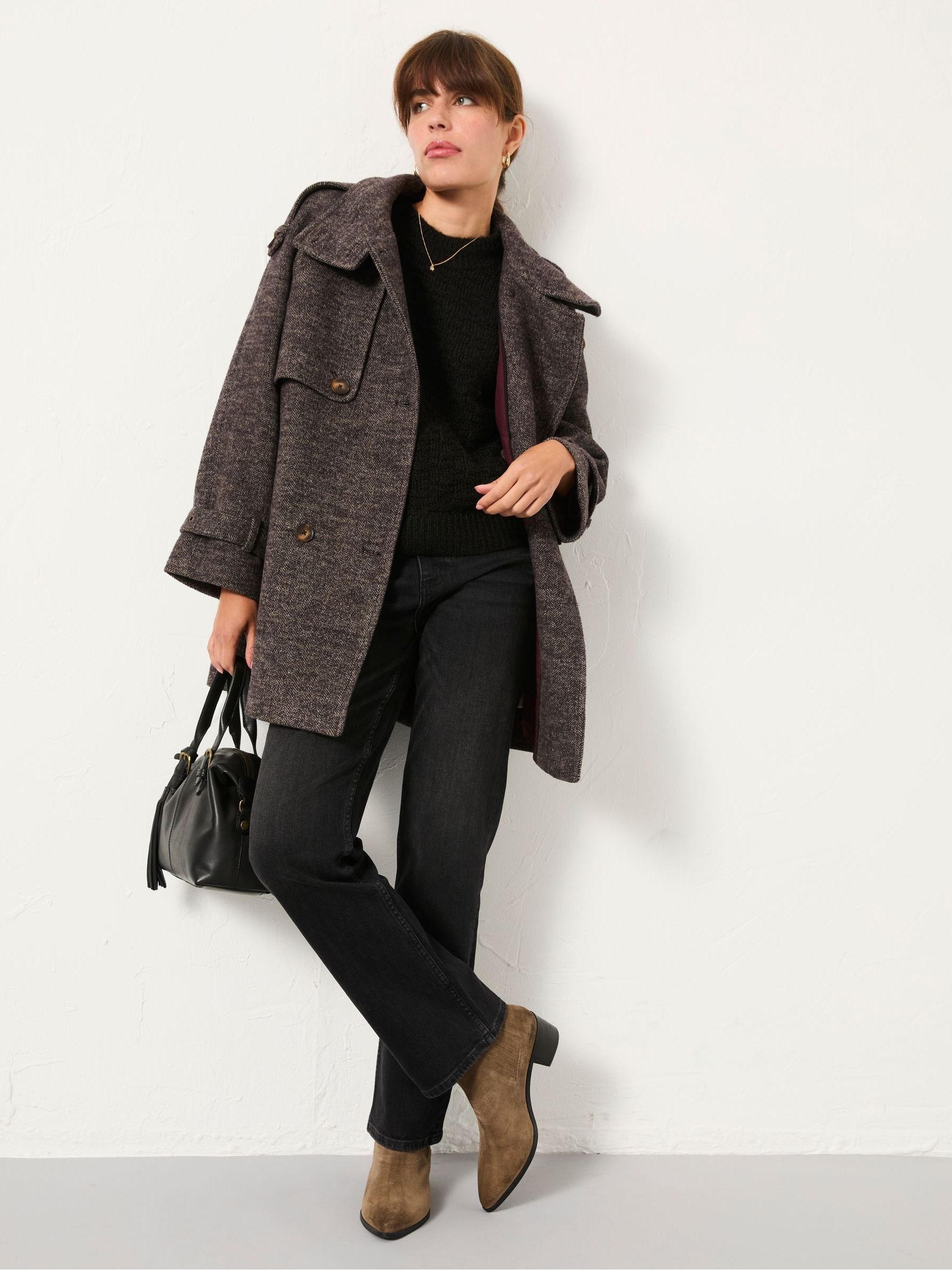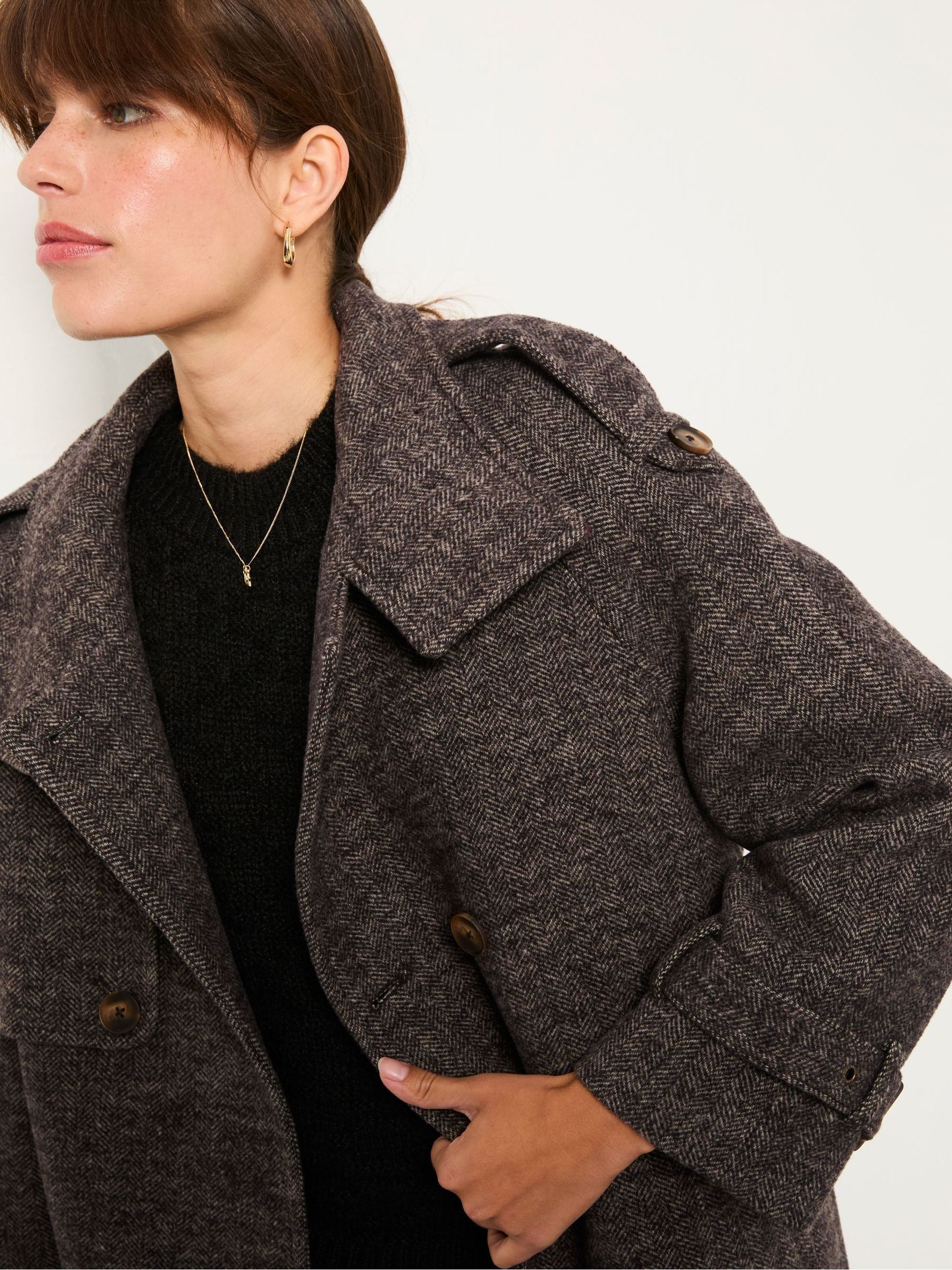 If you’re looking for a do-it-all jacket that’s warm, cosy and stylish, our Lottie Wool Blend Coat is the one for you. The wool blend is seriously toasty; the lining is incredibly soft; and the pockets are roomy enough for stashing essentials as well as chilly hands. Dress up over a dress for weekend dinners or pair with jeans for casual weekday strolls.Model is 5’9”/175cm and wears UK size 8Regular centre back neck to hem 32" / 81cm.