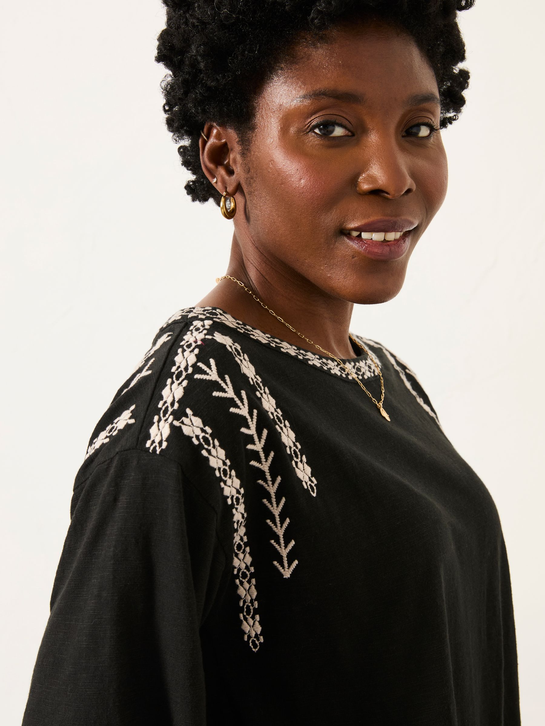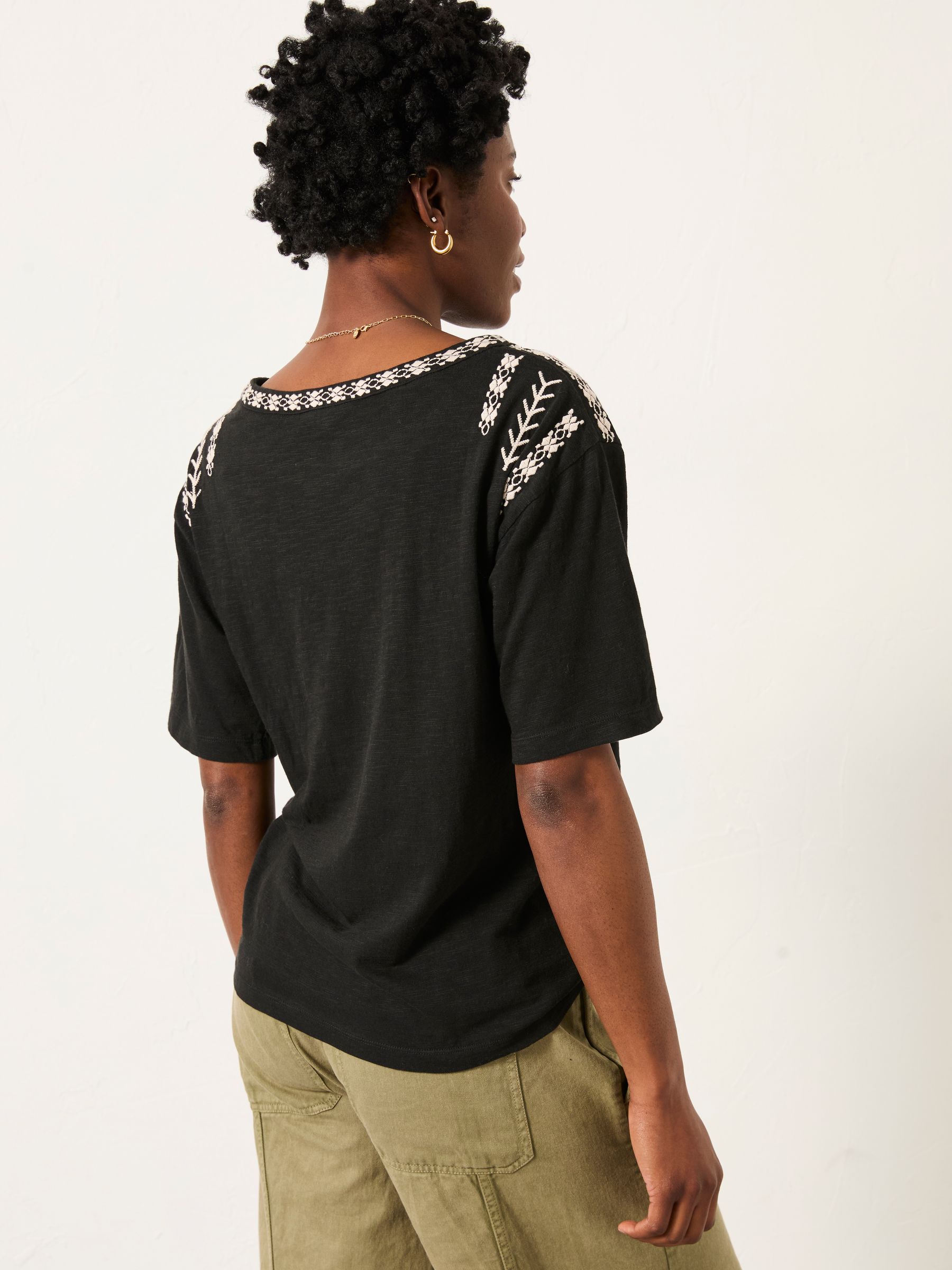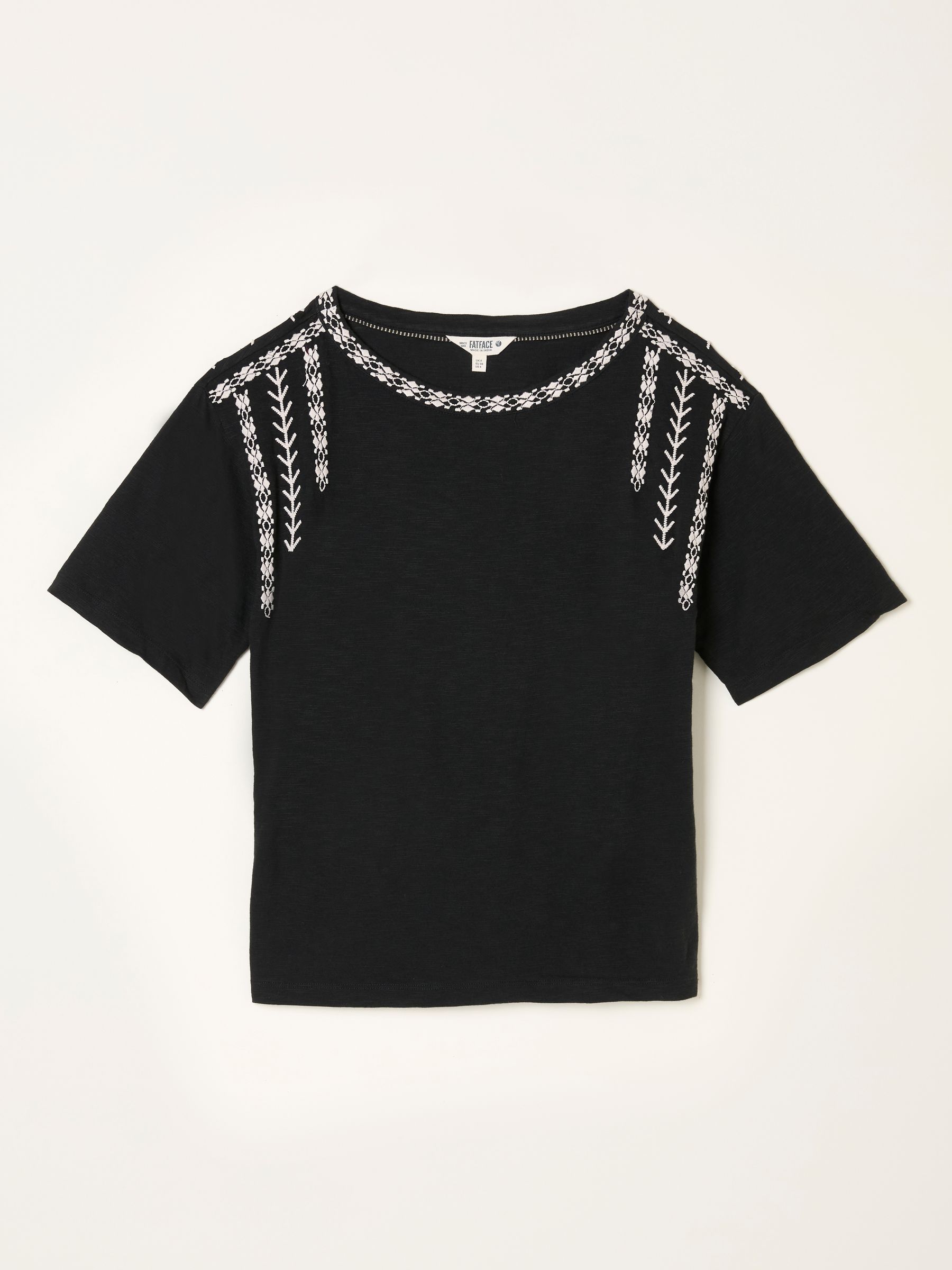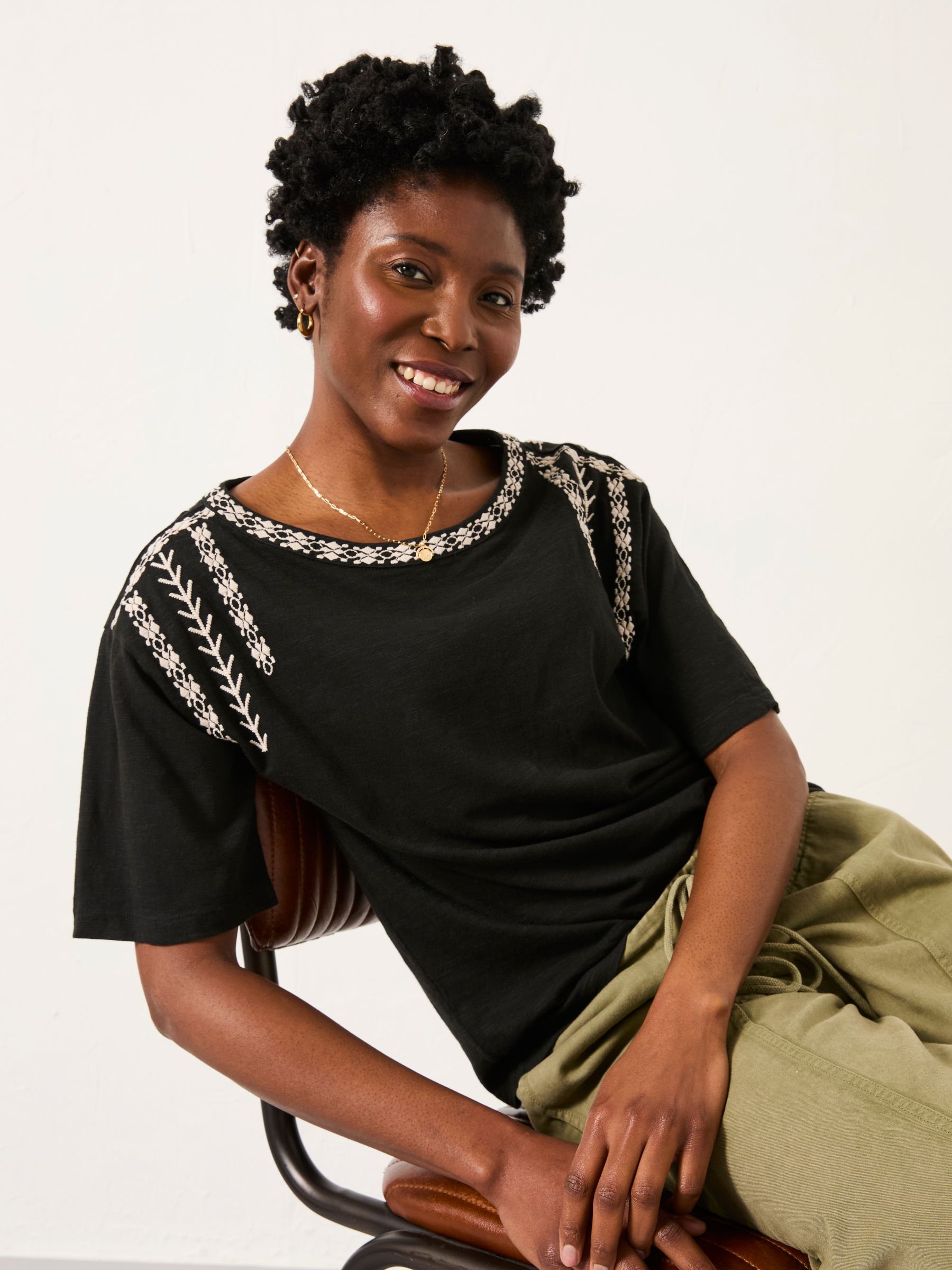 Our Maddie embroidered t-shirt brings a subtle pop of detail to your everyday rotation. Soft, breathable, and cut for a relaxed fit – it’s the kind of piece that works with everything from wide-leg denim to weekend joggers. Just throw it on and go.Model is 5’9”/175cm and wears UK size 8