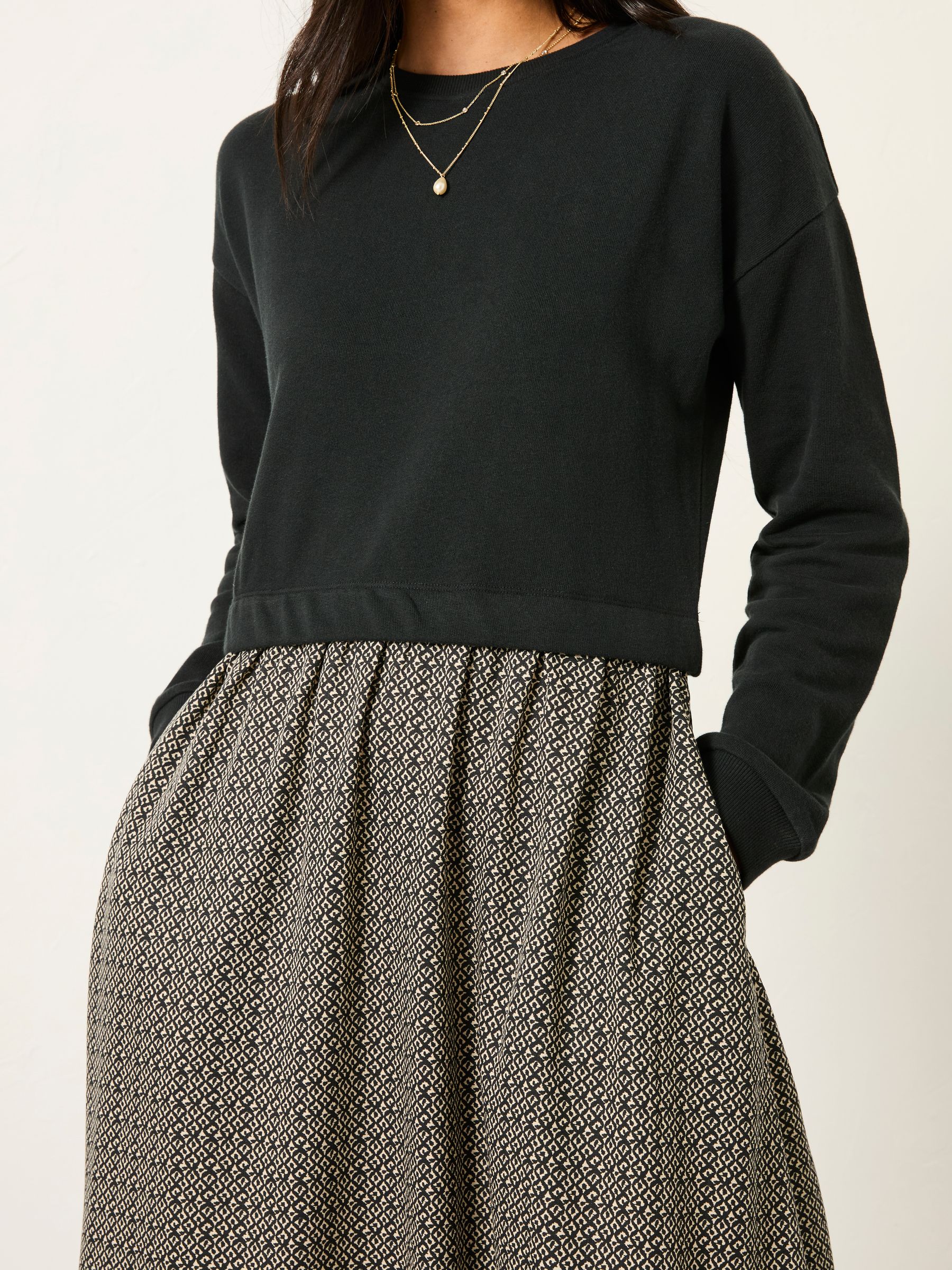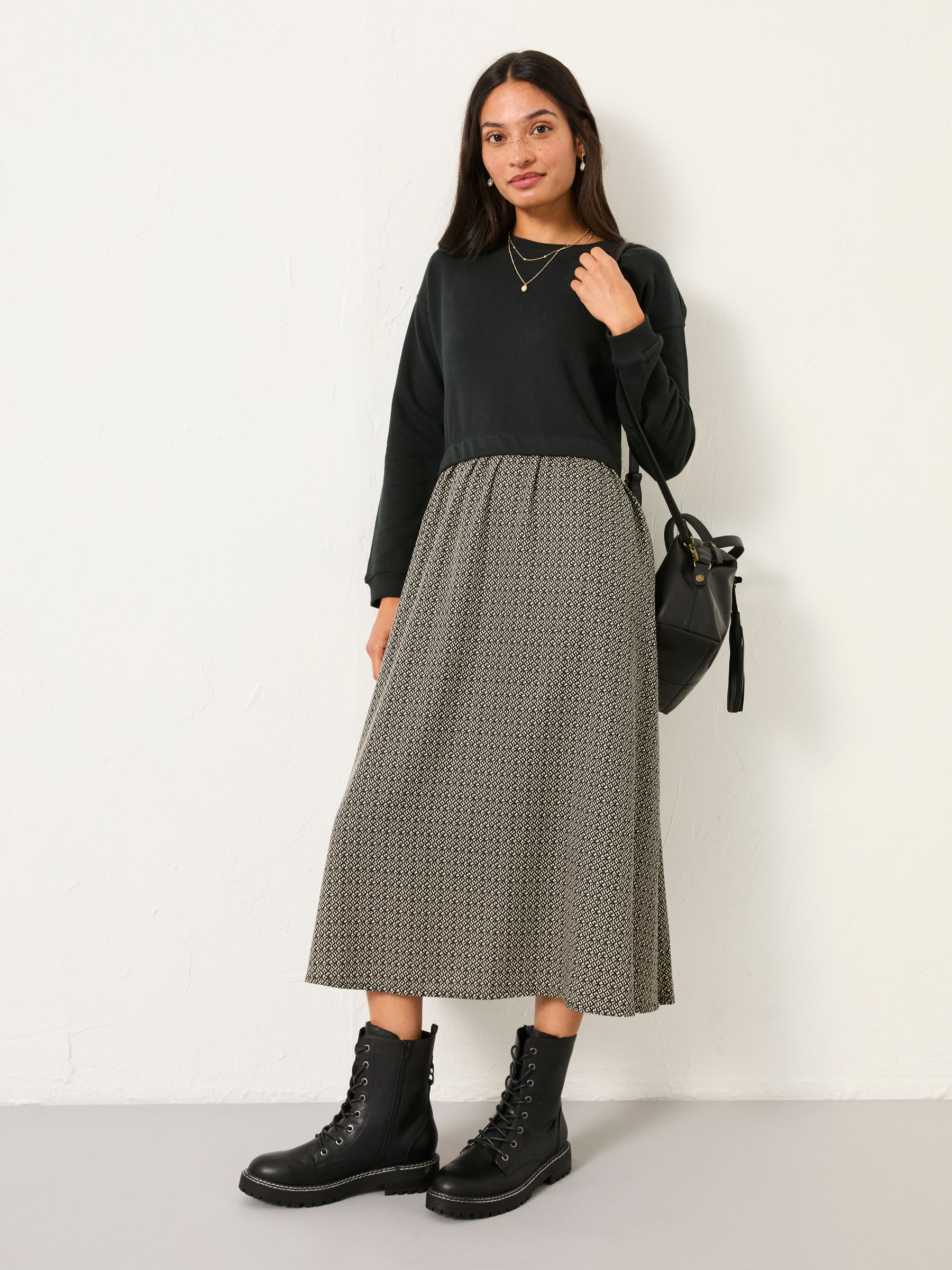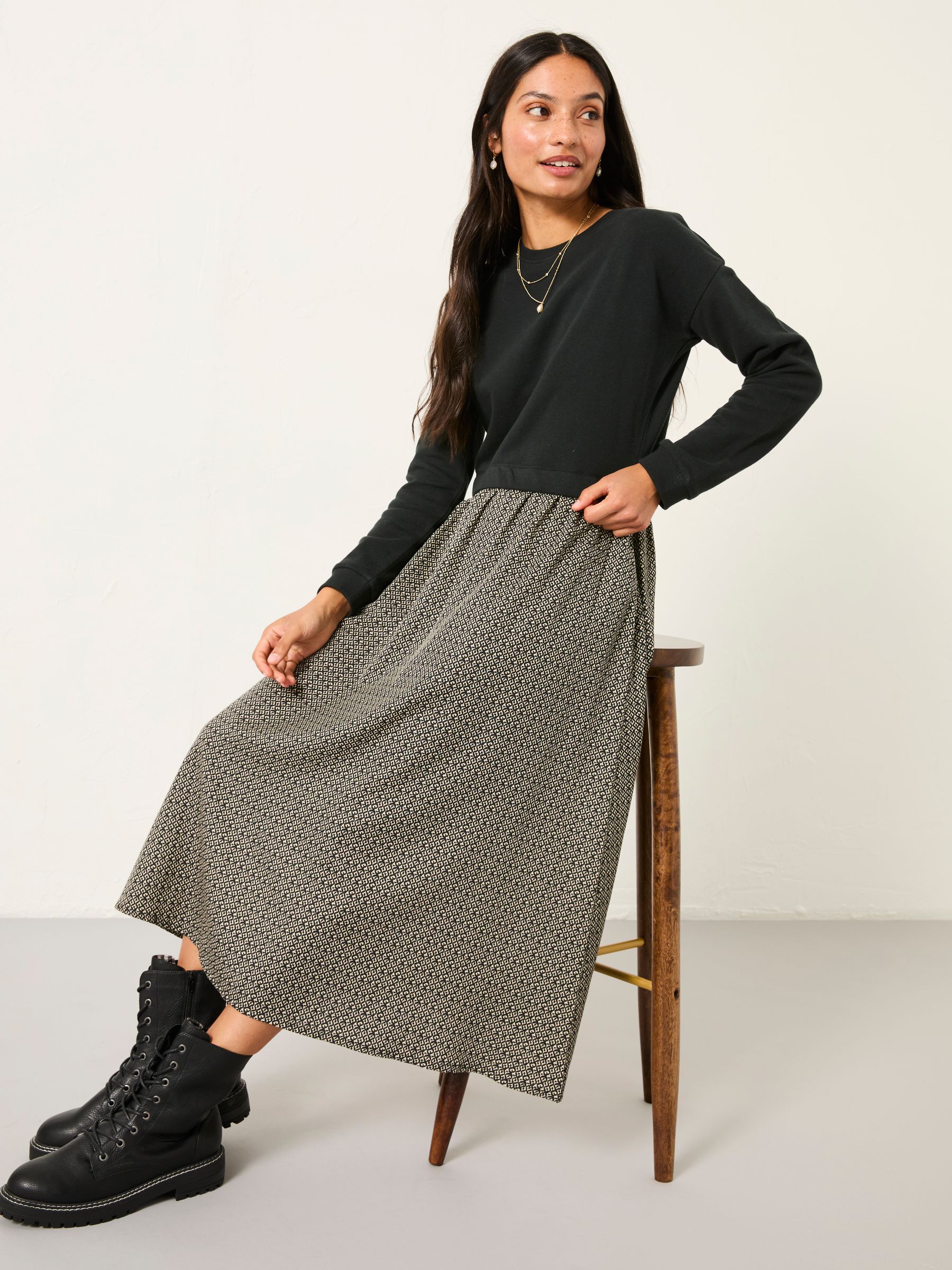 Fat Face Women’s Nia Dark Natural Ikat Geo Regular Midi Dress
