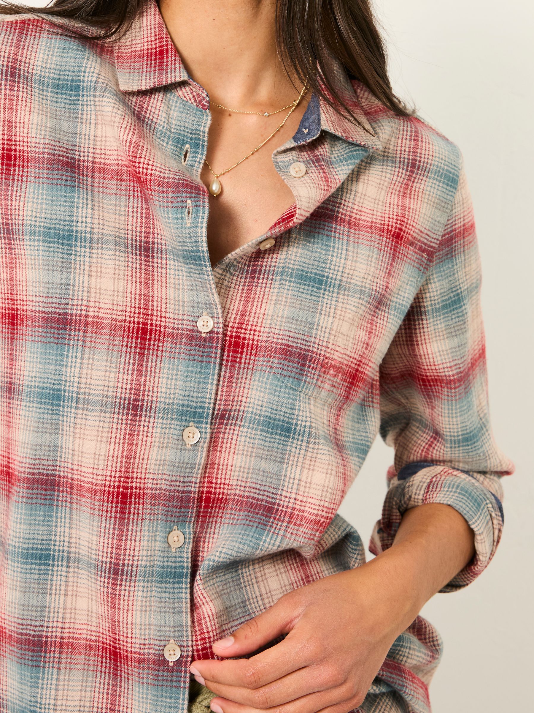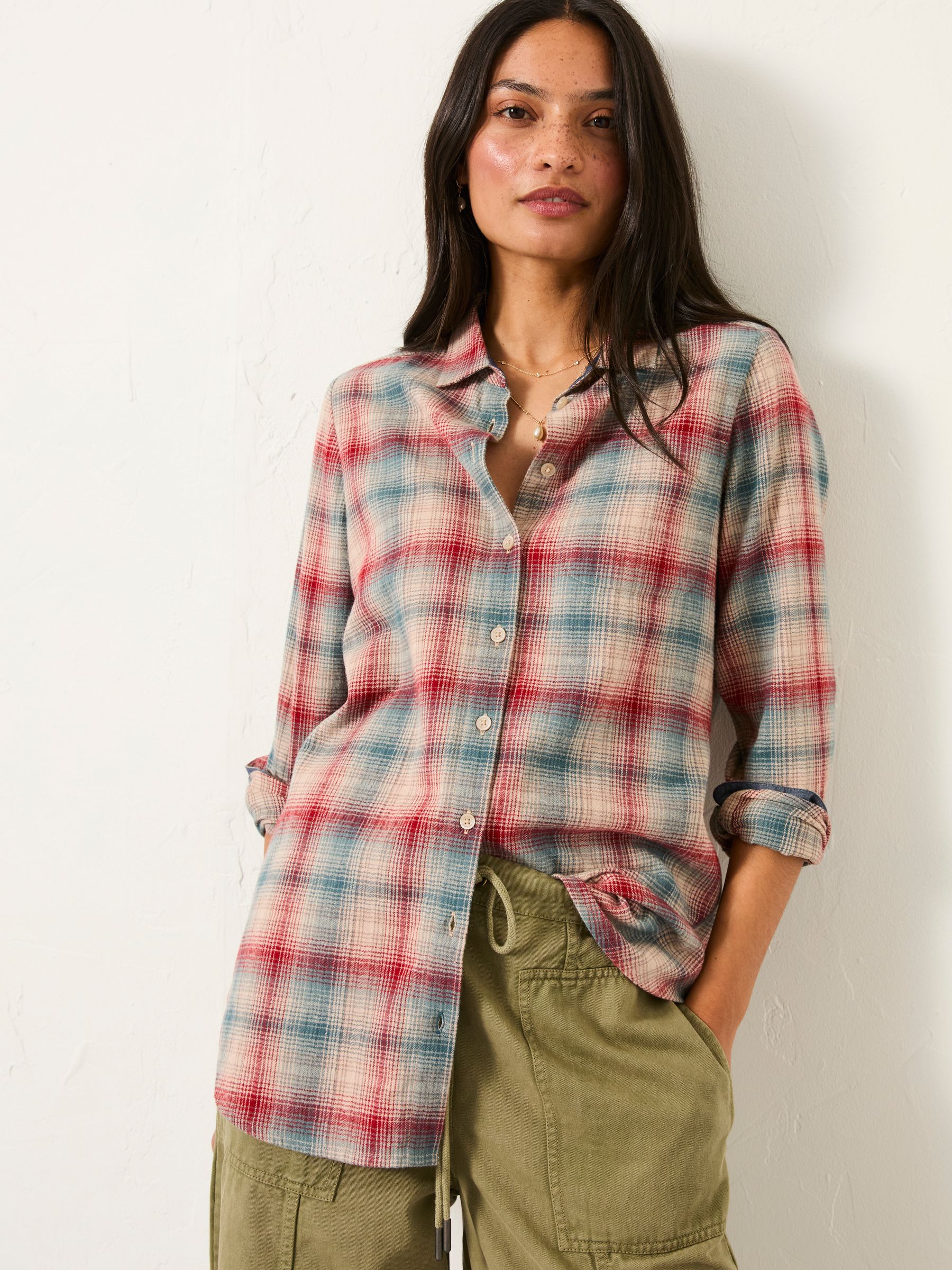 Step into laid-back confidence with our Olivia Red check shirt, the perfect blend of timeless style and modern ease. Crafted from soft, breathable cotton, this shirt features a tailored fit and bold check pattern that transitions seamlessly from casual mornings to spontaneous weekend getaways. Wear it open over a T-Shirt for a relaxed vibe or buttoned up for a smart-casual look – this is the go-to piece for those who live life with effortless style.Model is 5’9”/175cm and wears UK size 8