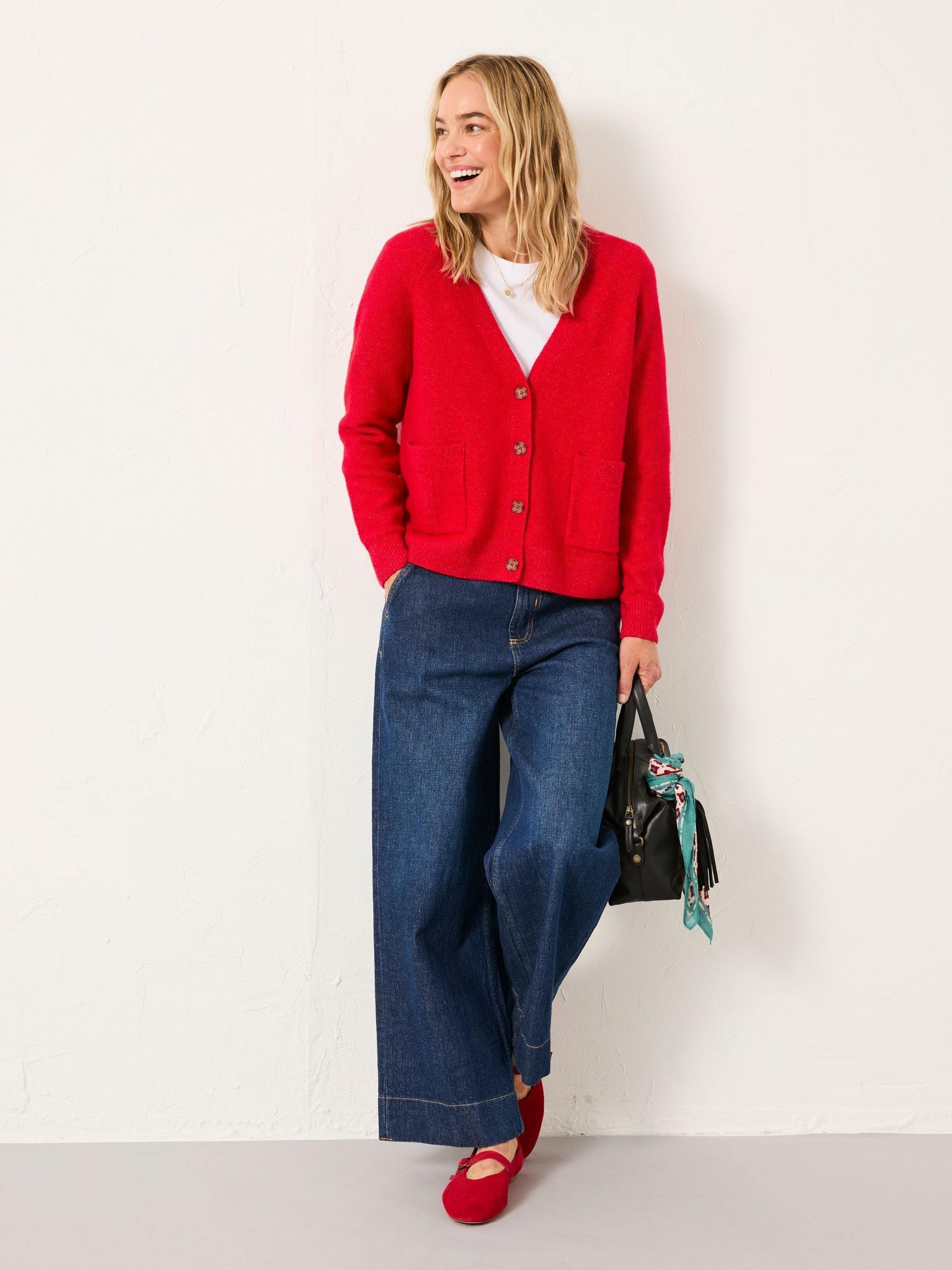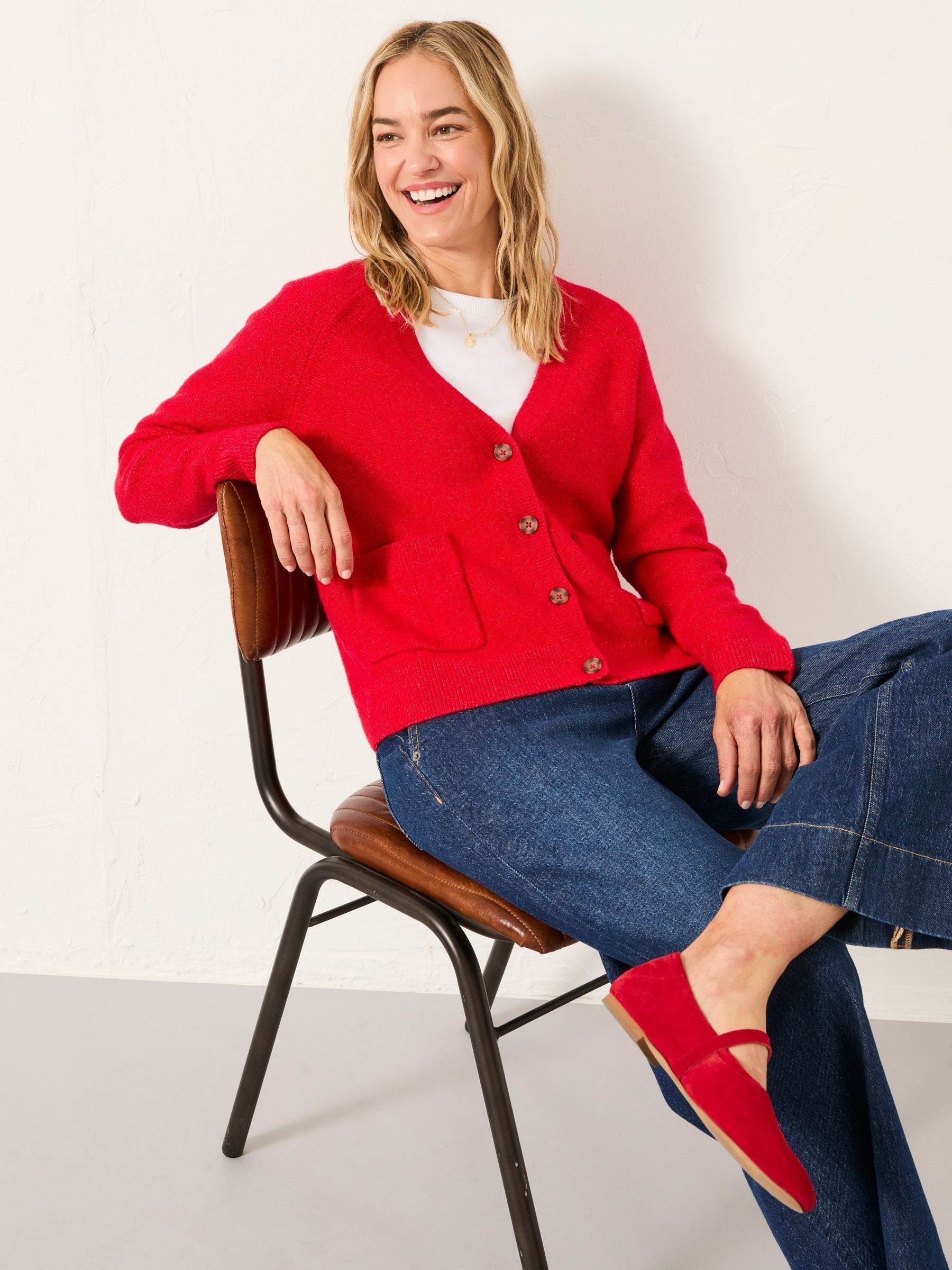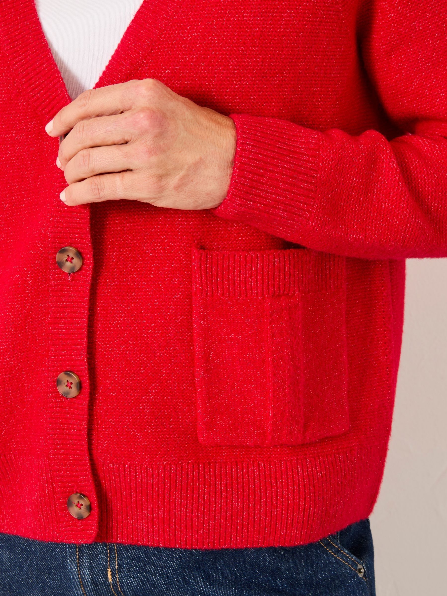 Stay stylish and cosy all day long in our Polly knitted cardigan, featuring a flattering v-neckline, cuffed sleeves and waistline, large pockets and chunky buttons. Crafted from a soft fabric blend, this cardigan is comfortable and ready to wear with all your favourite outfits. Whether you need a light layer over a dress or pairing with a staple pair of denim jeans for everyday wear, our Polly cardigan will be your new favourite cosy piece.Model is 5’9”/175cm and wears UK size 8