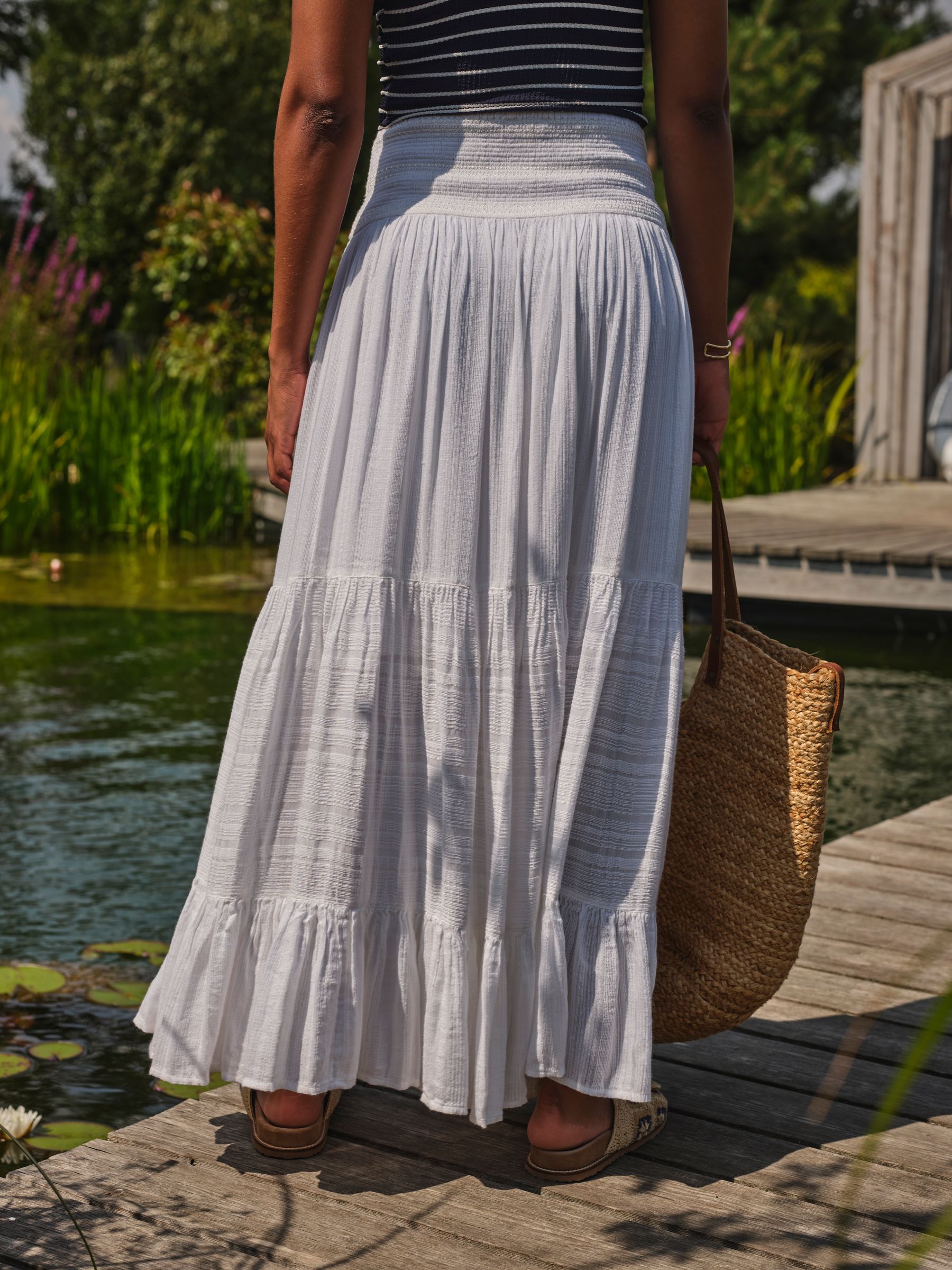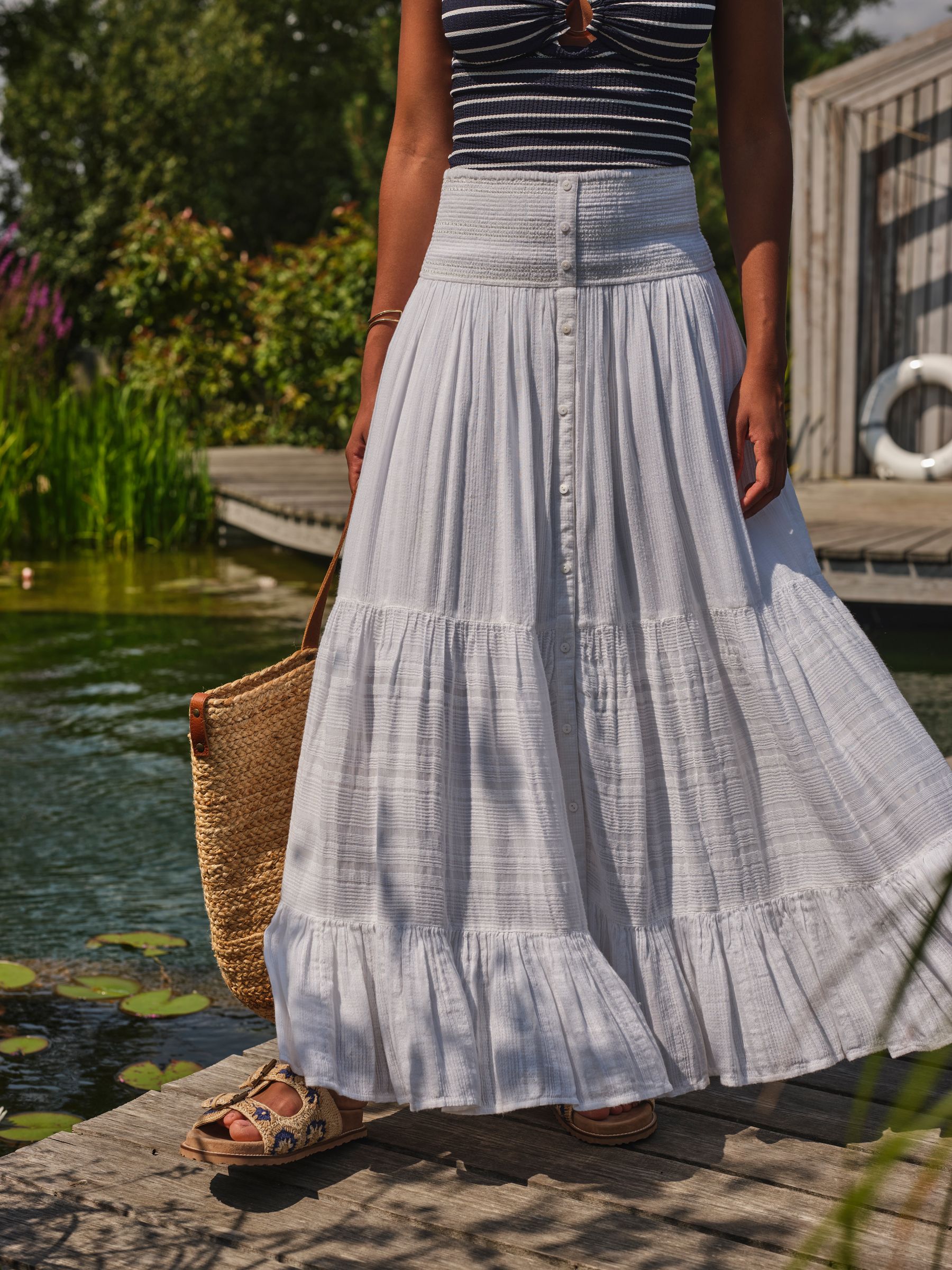 Stylish and feminine, our Rhea beachwear skirt is the ideal piece to throw on over your favourite swimsuit or bikini. Designed for a relaxed, floaty fit, she’s made from soft fabrics for a breathable, lightweight feel – perfect for those sunny days. She features a flattering shirred high waist with an effective midi length – she’s not just any skirt.Regular waistband to hem 37.5" / 95cm.