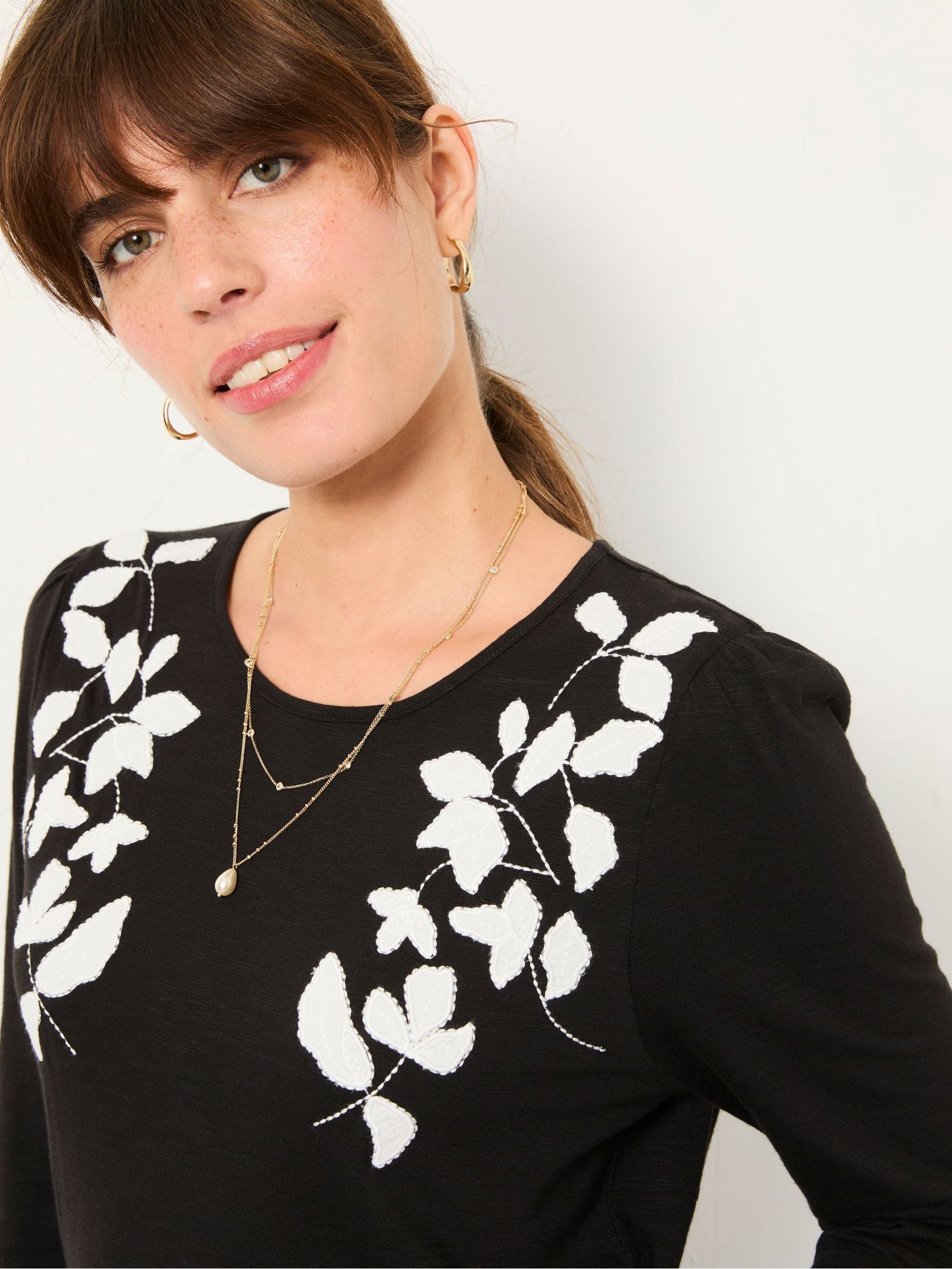 Our Ria applique detail top adds texture and interest to your everyday look – easy to throw on, just enough detail to stand out. Whether you’re heading out for coffee or dressing it up for dinner, it brings just the right amount of detail to elevate your look. Simply pair with jeans or trousers and you’re good to go.