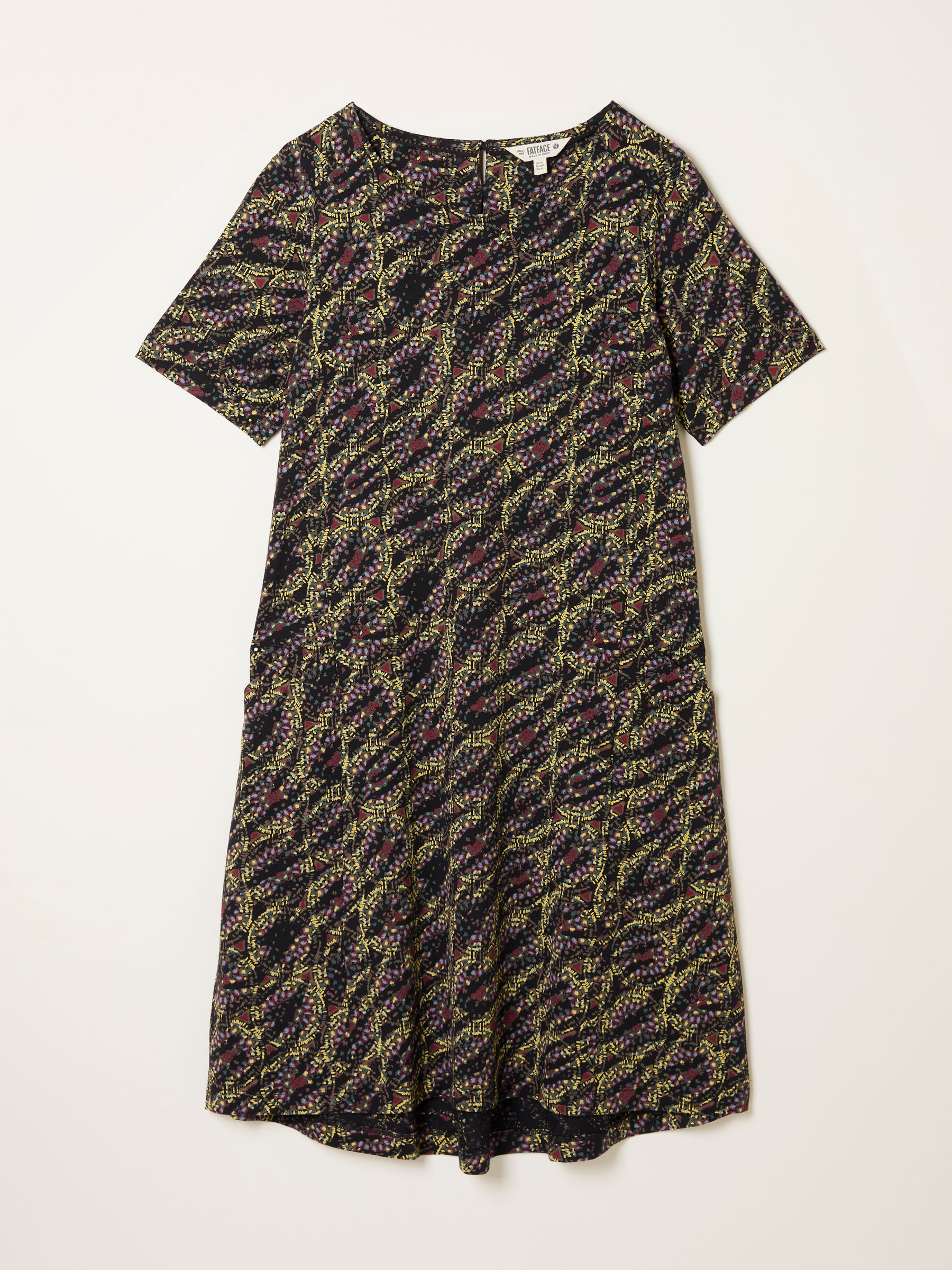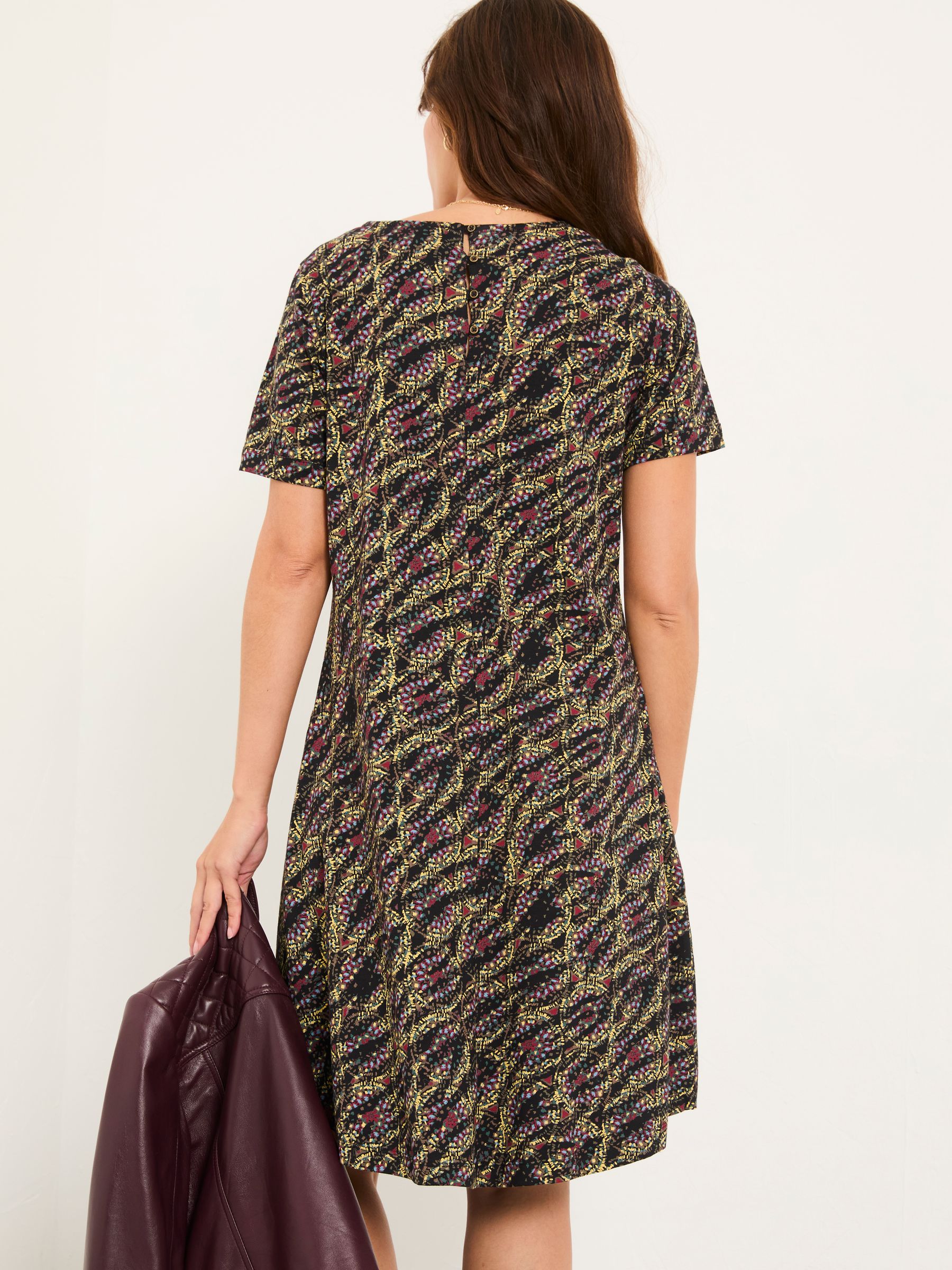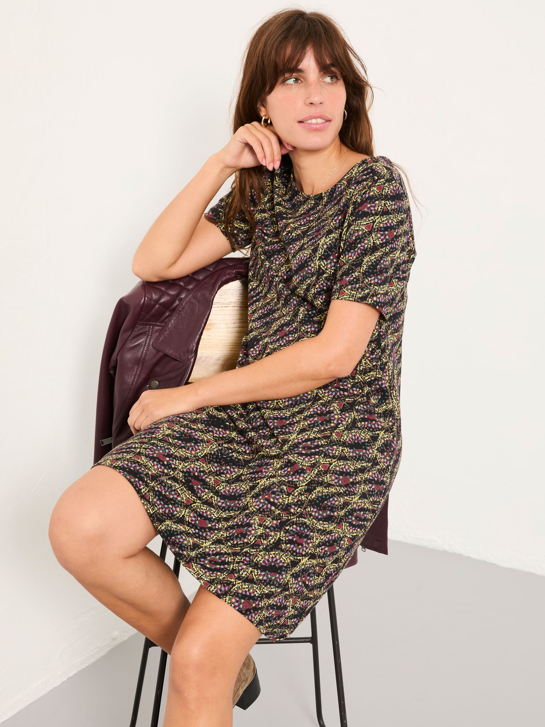A great look all year round, this jersey dress is an instant look you can layer up and wear to work or on the weekend. Made with lovely fabrics, it has a soft touch and easy-to-wear feel with a textured design. Don’t be afraid of the short sleeves, as this dress is great for layering with a cardigan or denim jacket. We also love to wear it with tights on colder days or with sandals in the summer.Model is 5’8”/173cm and wears UK size 8 LongRegular side neck to hem 35" / 89cm.