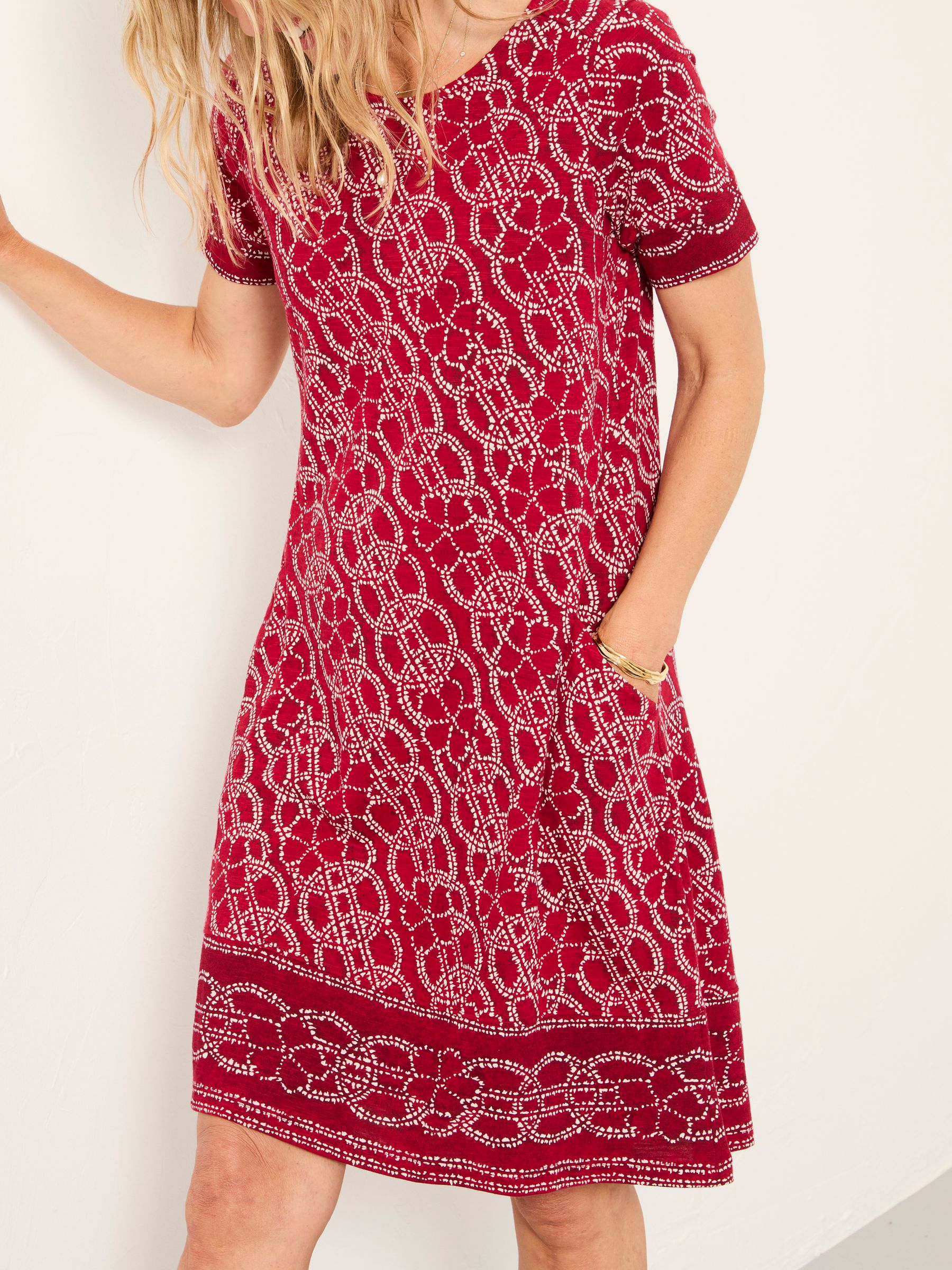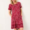 A great look all year round, this fun jersey dress is an instant look you can layer up and wear to work or on the weekend. Made with lovely fabrics, it has a soft touch and easy-to-wear feel with a floral design. Don’t be afraid of the short sleeves, as this dress is great for layering with a cardigan or denim jacket. We also love to wear it with tights on colder days or with sandals in the summer.Model is 5’8”/173cm and wears UK size 8 LongModel is 5’9”/175cm and wears UK size 8 LongRegular side neck to hem 32.5" / 83cm.