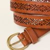 Our cut out detail leather belt is not only good for practicality but also for embellishing an outfit. With a pair of denim jeans or around a flowy dress to add shape, the options are endless. Made from soft 100% leather and topped off with a gold buckle, this belt provides versatility and comfort.