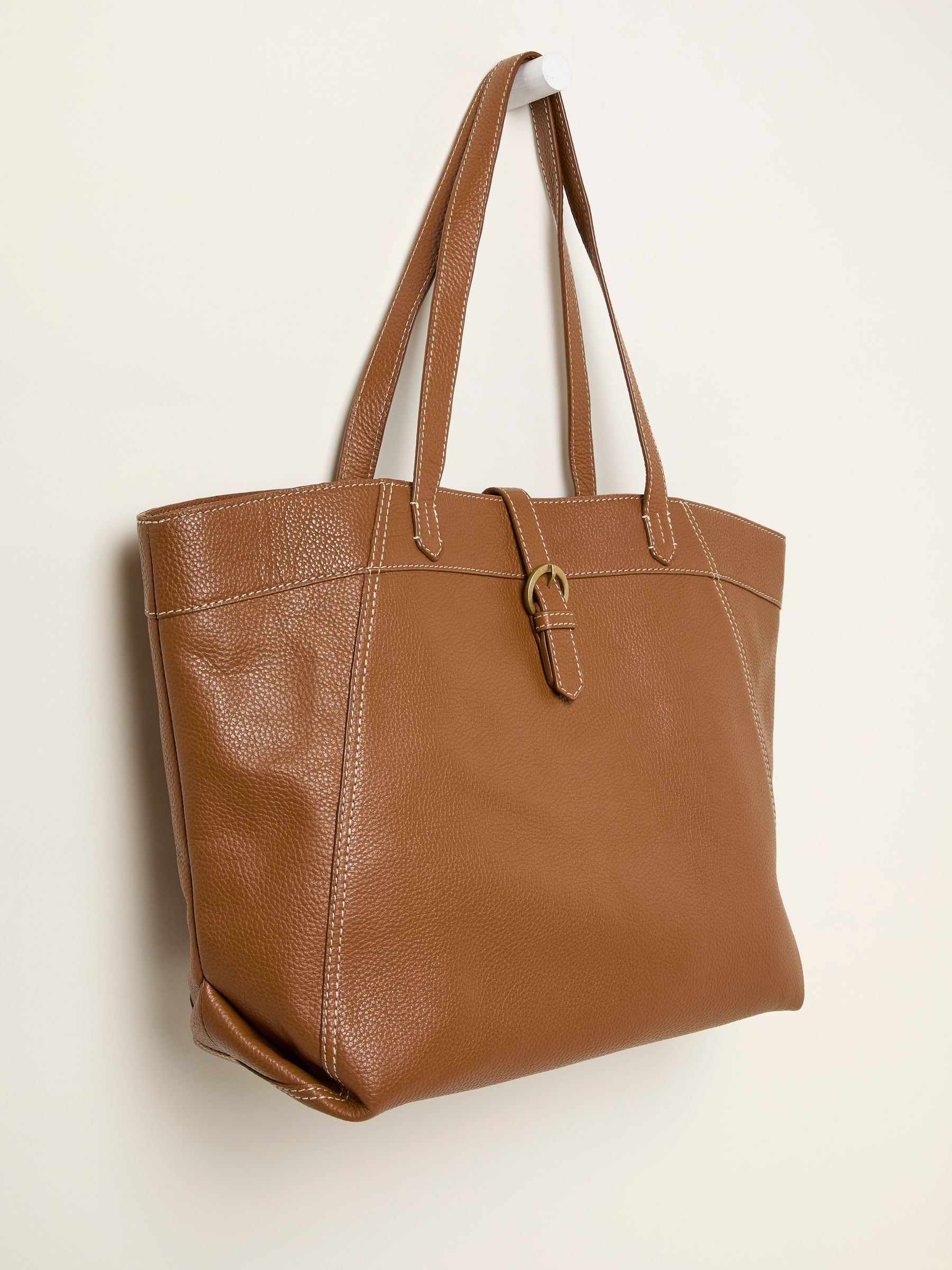 Our bags are perfect for everyday use, from weekends to weekdays. Made out of 100% leather, lots of storage and a buckle fastening, this bag is practical and is a must have to elevate any outfit – from your weekly food shop to days in the office.Model is 5’9”/175cm and wears UK size 8Height 34cmWidth 51cm