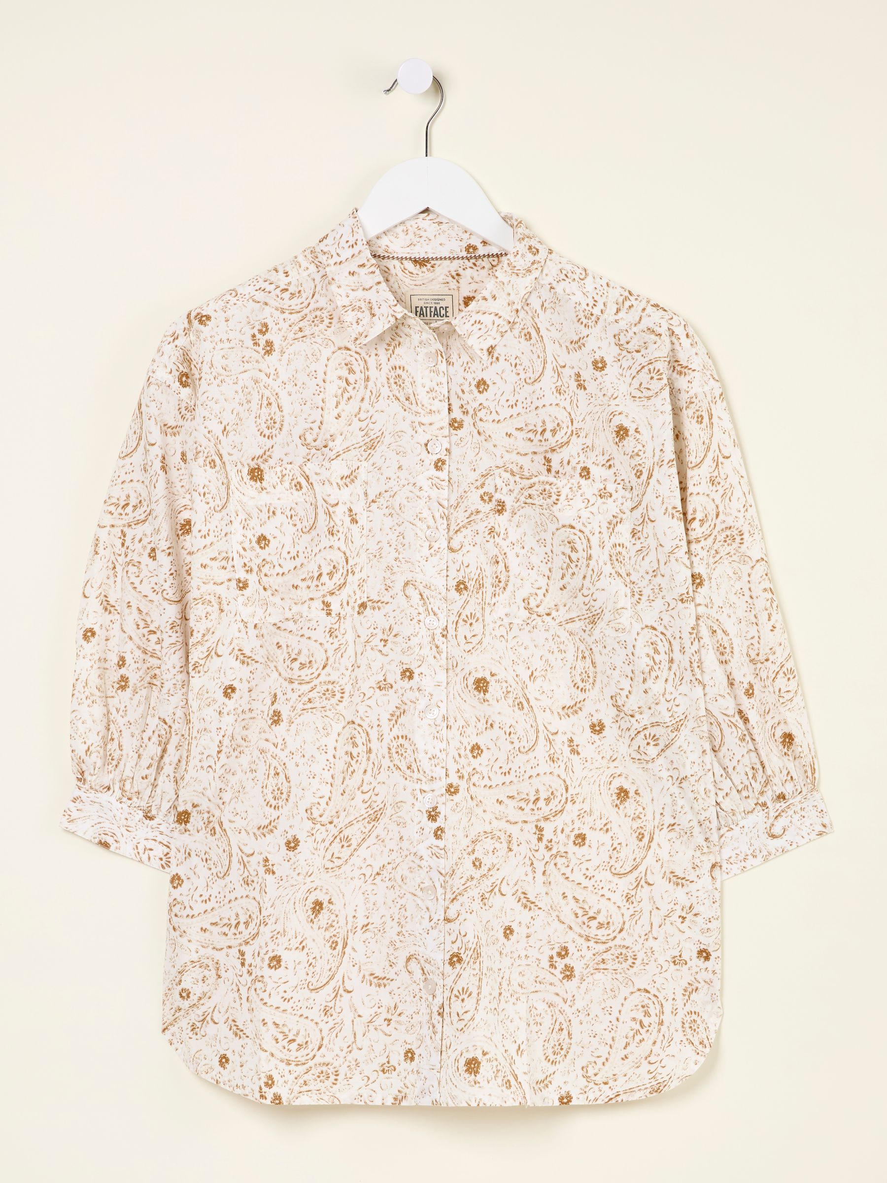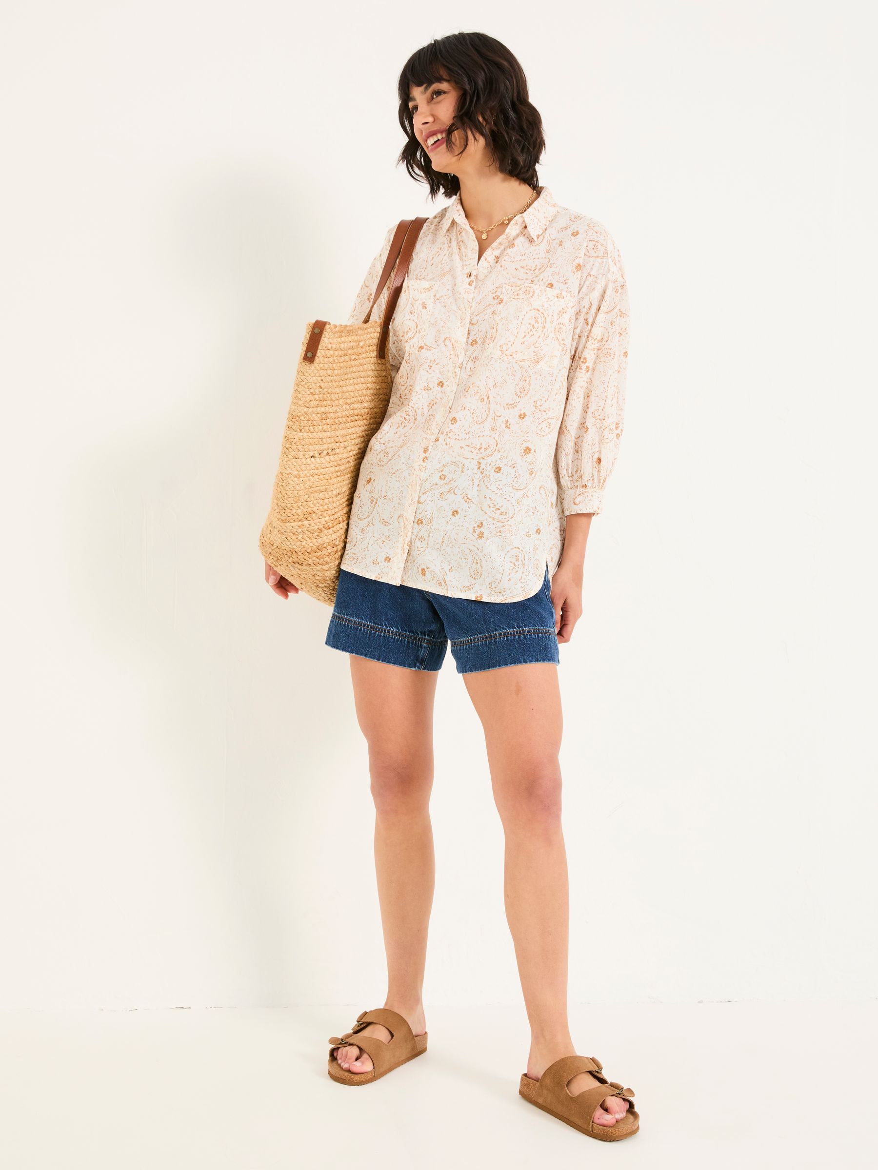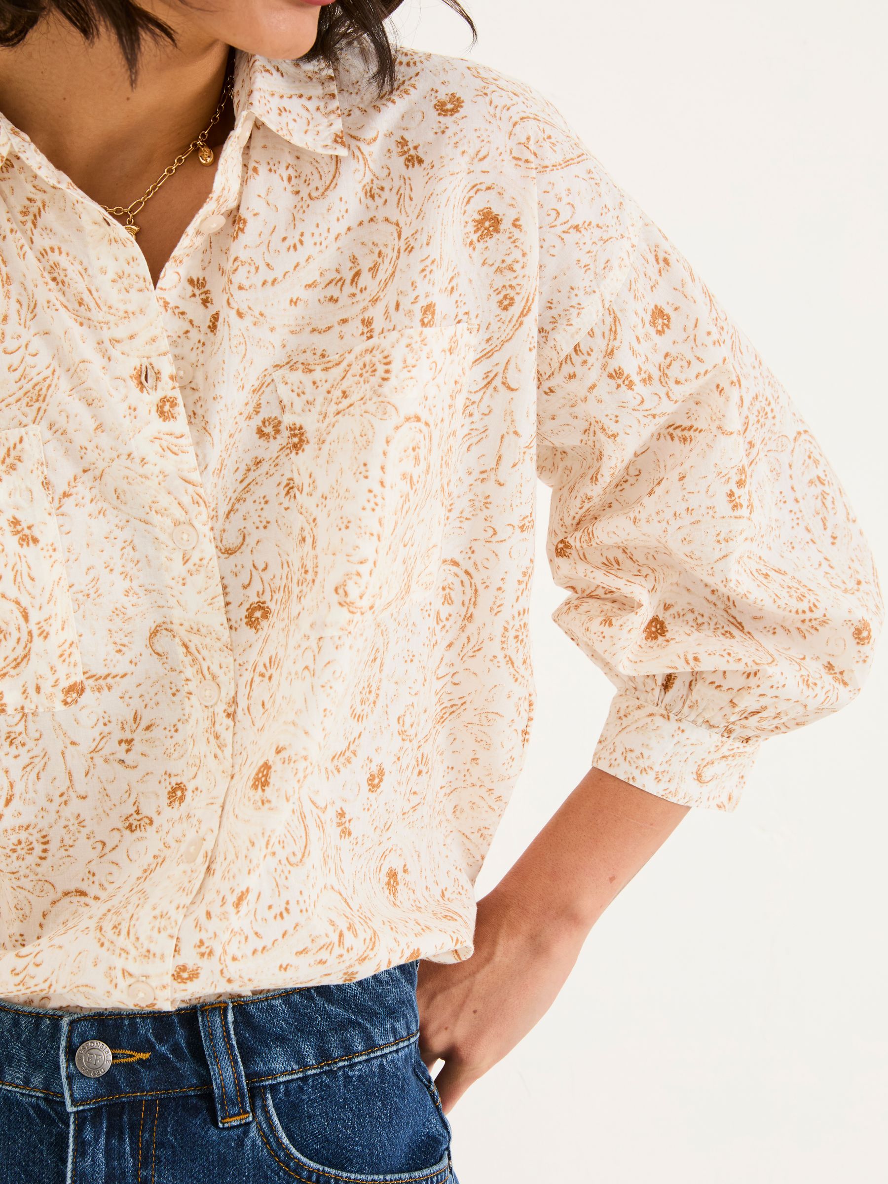 Our Whitney Ivory Paisley shirt is the ultimate seasonless wardrobe staple. Made from 100% Cotton, she is soft and breathable, so she can be worn all day while staying comfortable.She features adjustable 3/4 length sleeves with a flattering length and a curved hem – perfect for pairing with your favourite trousers or skirts.